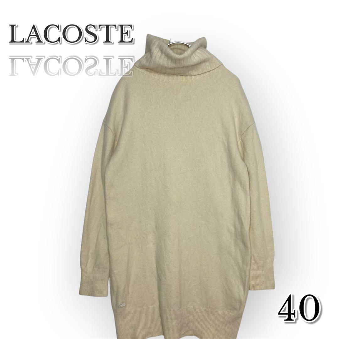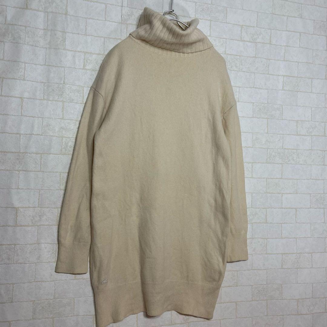 LACOSTE ラコステ ウール タートルネック ニット ワンピース 白 L ゆったり  3958 0073601