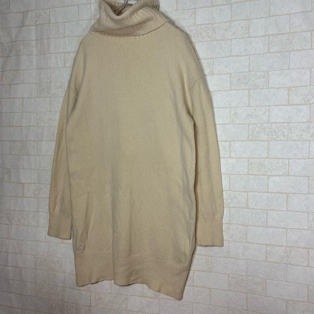 LACOSTE ラコステ ウールタートルネックニットワンピース 白 L ゆったり