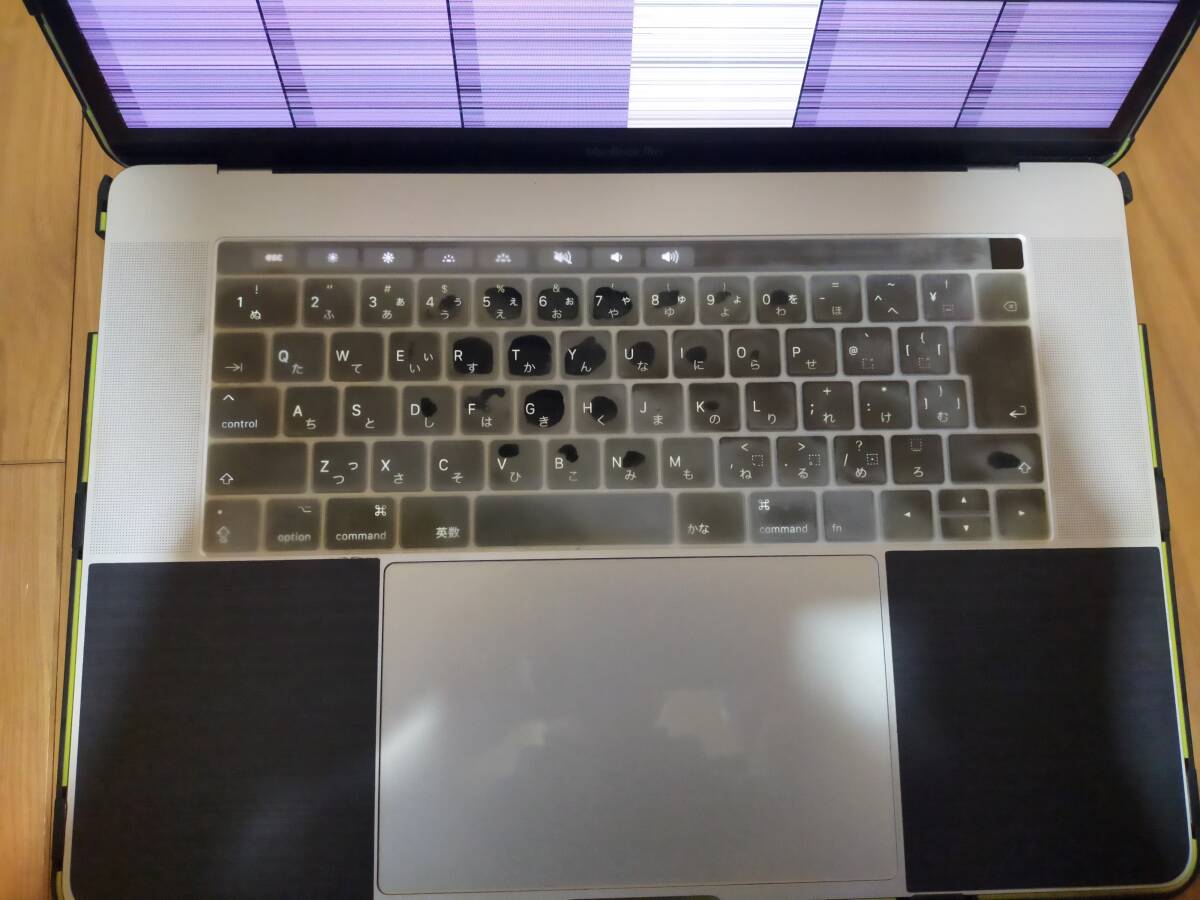 本体に保護カバーやキーボードカバーなどが付いています。付けたまま発送させて頂きます。