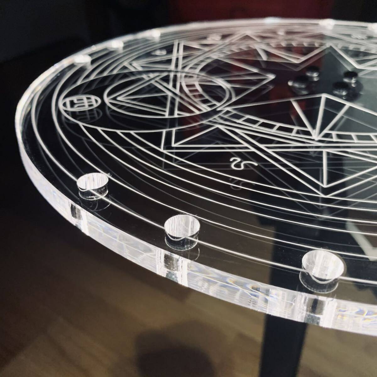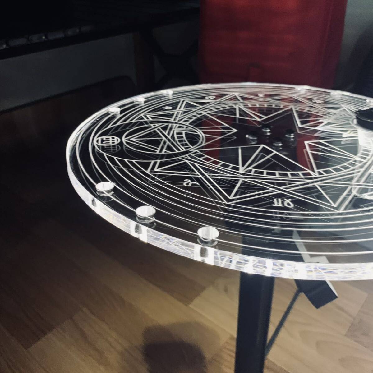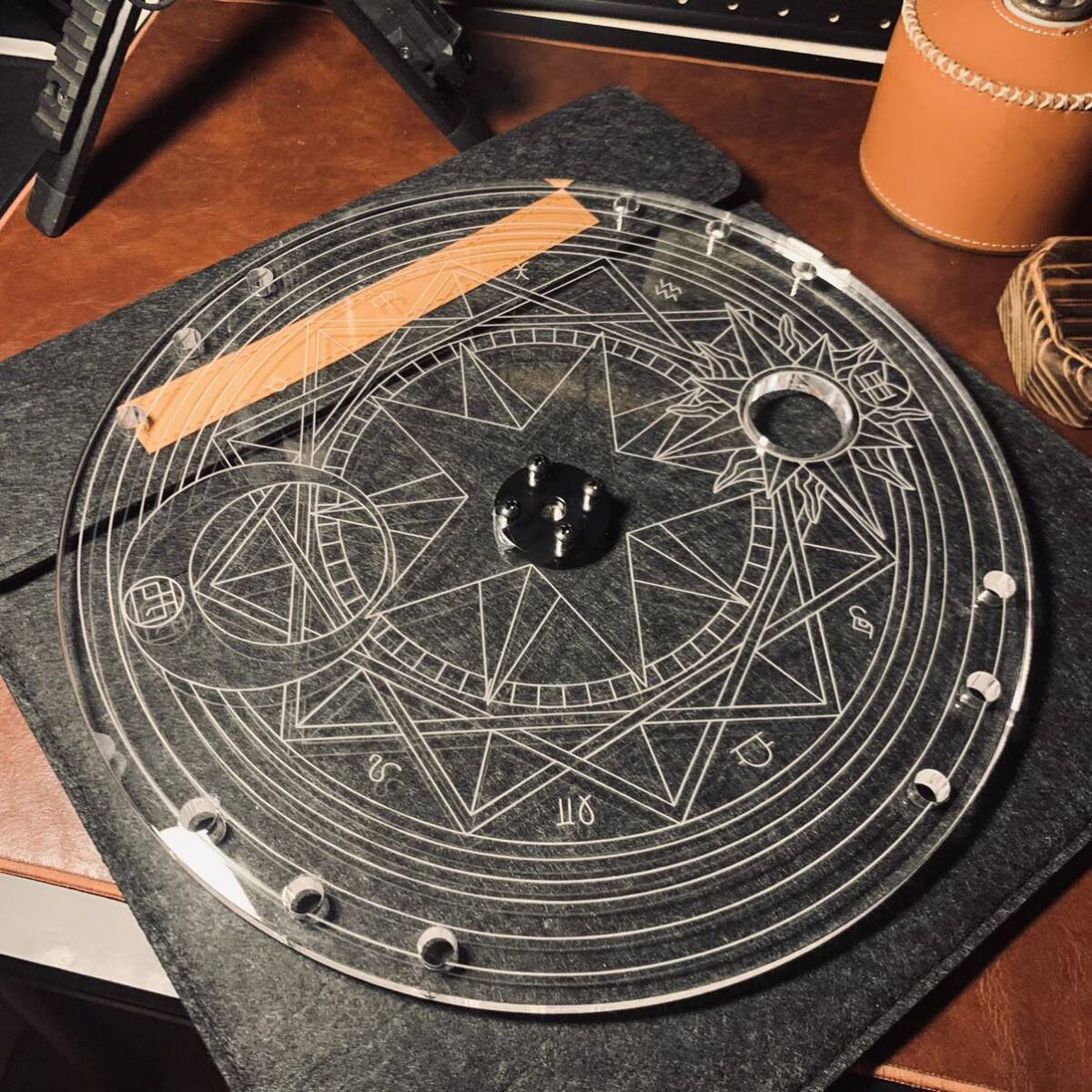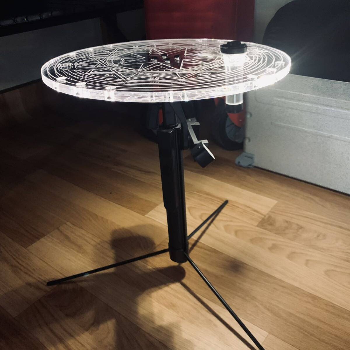 超激レア キャンプ 超高品質 光影円形テーブル天板 goalzero穴 径32cm 厚1cm三脚利用可能 アウトドア 專用収納ケース付き