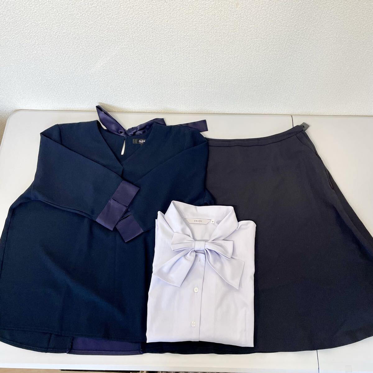 17号【中古】プルオーバー スカート ブラウス 3点セット事務服 OL 会社制服 受付/en joie ENJOY/42000/おしゃれ 可愛い /大きいサイズ