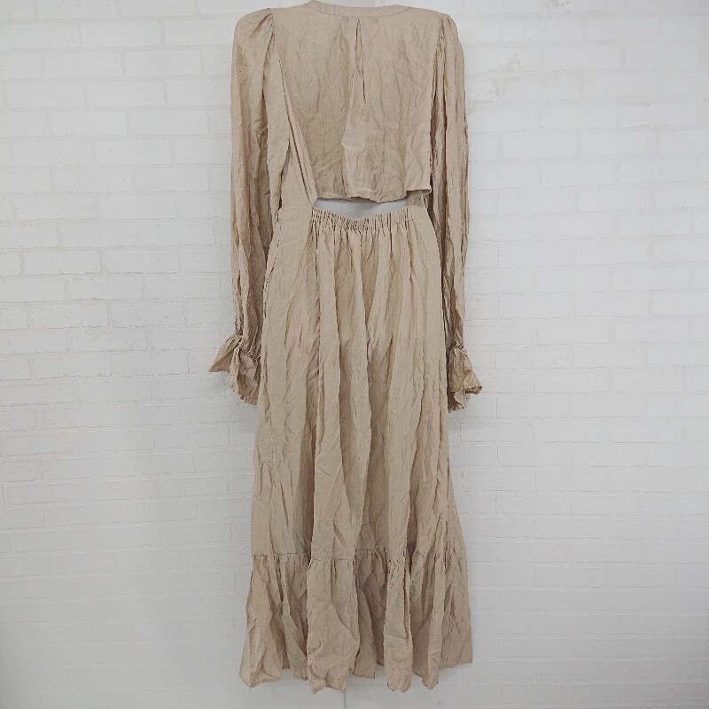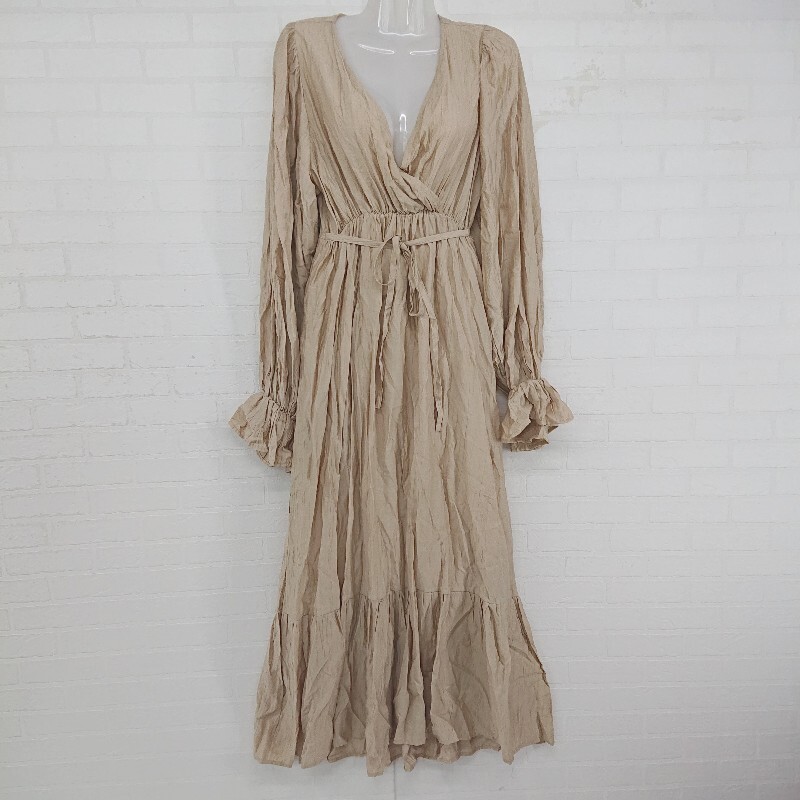 ◇ Heather カシュクール バックオープン 長袖 ロング ギャザー ワンピース サイズ F ベージュ レディース P