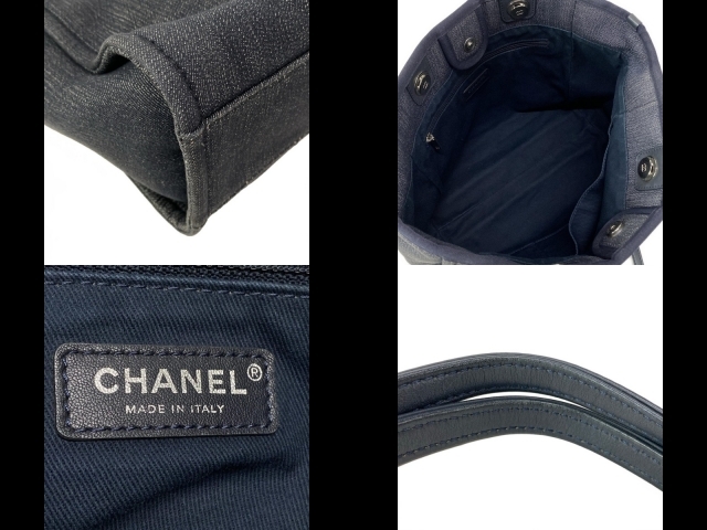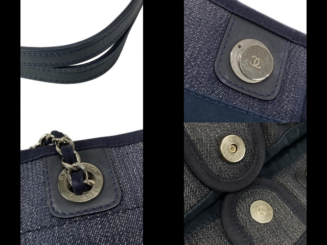 シャネル CHANEL トートバッグ ドーヴィルラインMM レザー ネイビー×オレンジ シルバー金具 バッグ