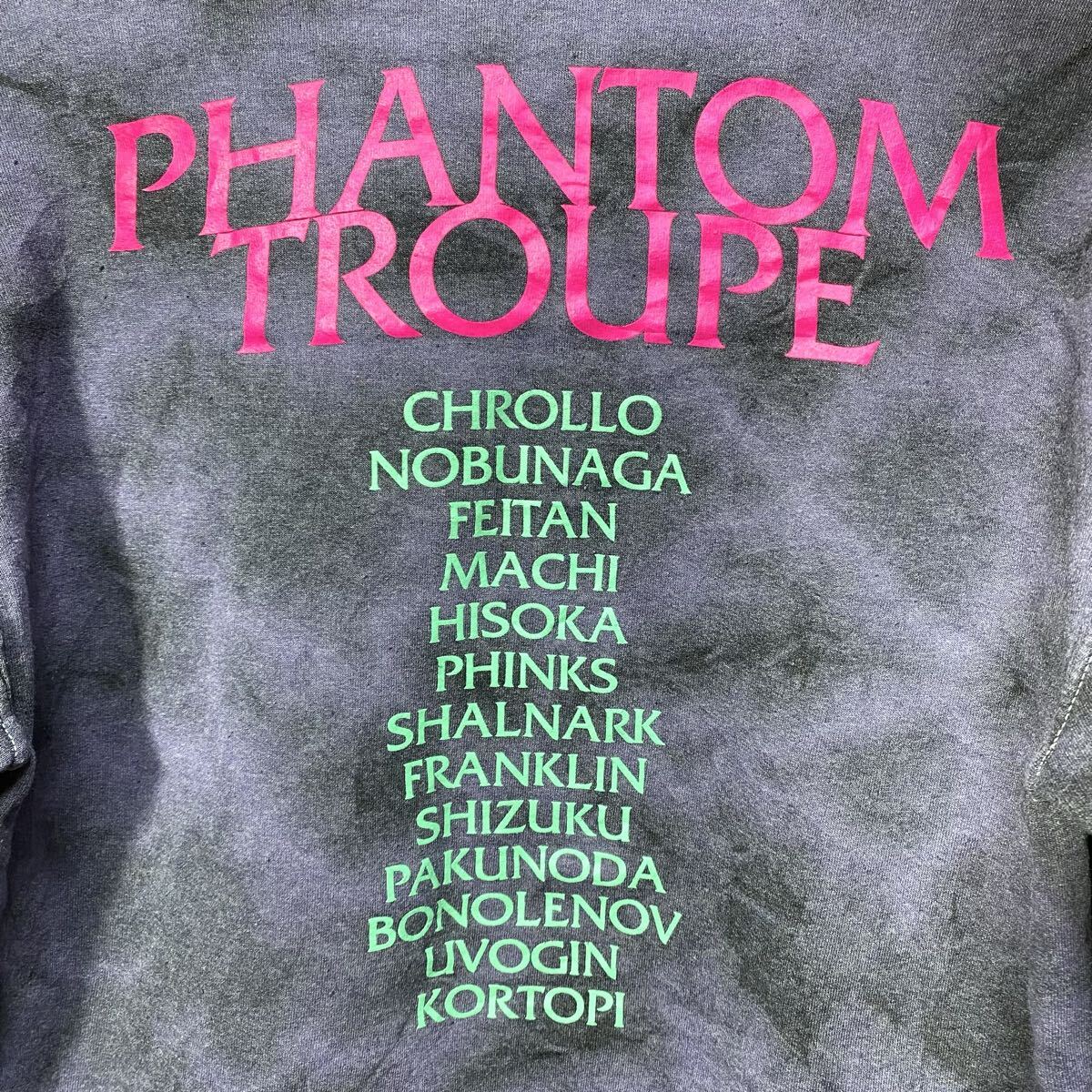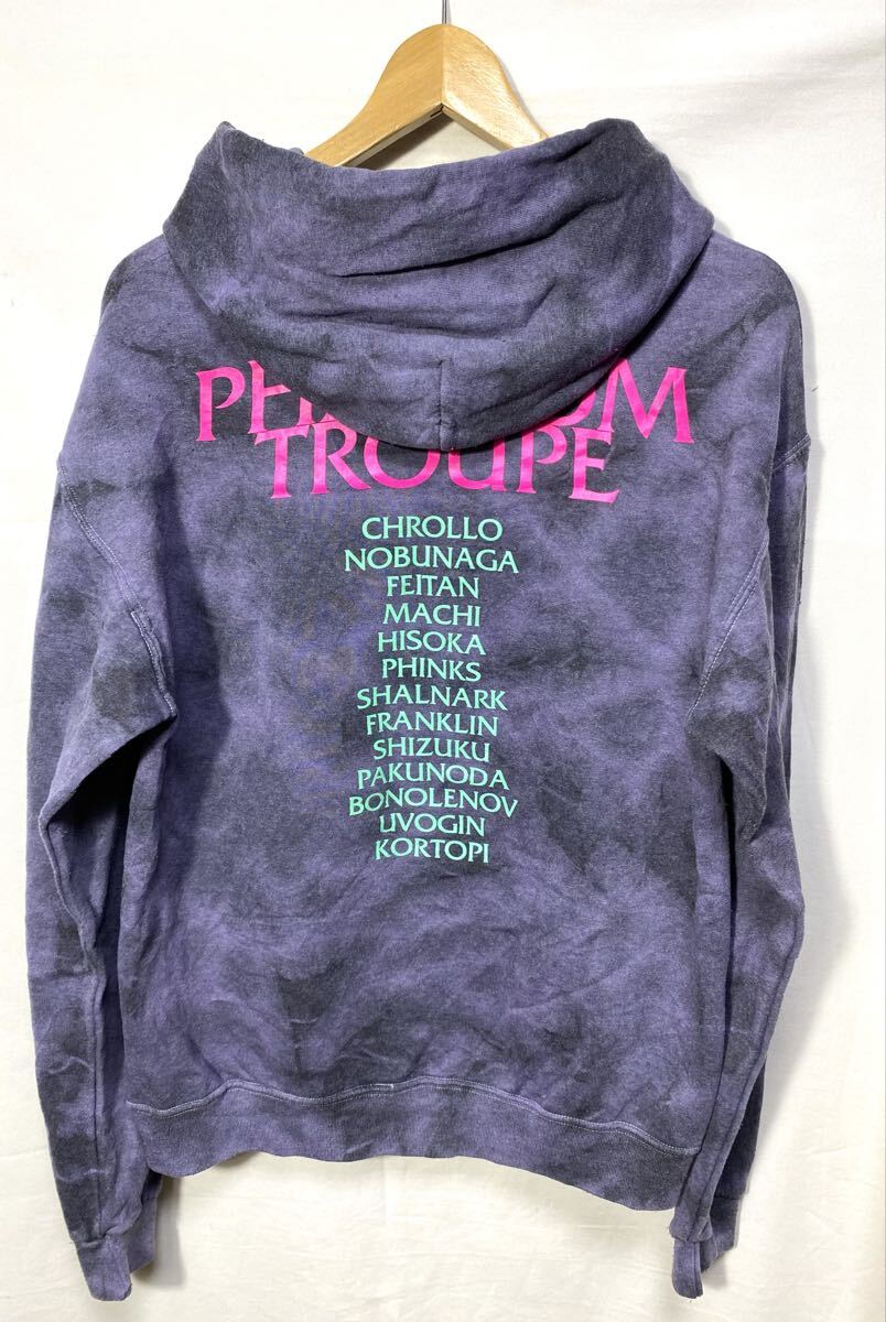 ■ HUNTER × HUNTER ハンターハンター PHANTOM TROUPE 袖ロゴ入り タイダイ染 スウェット フーディー 古着 サイズS 漫画 クロロ ヒソカ ■