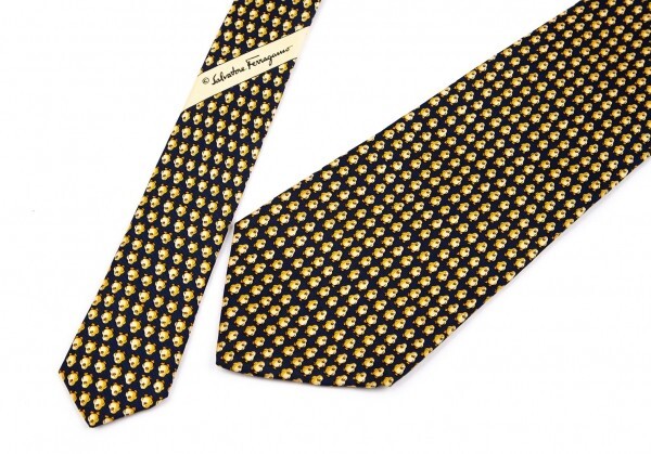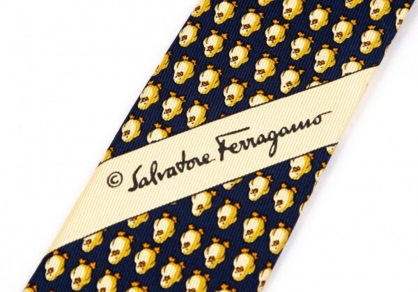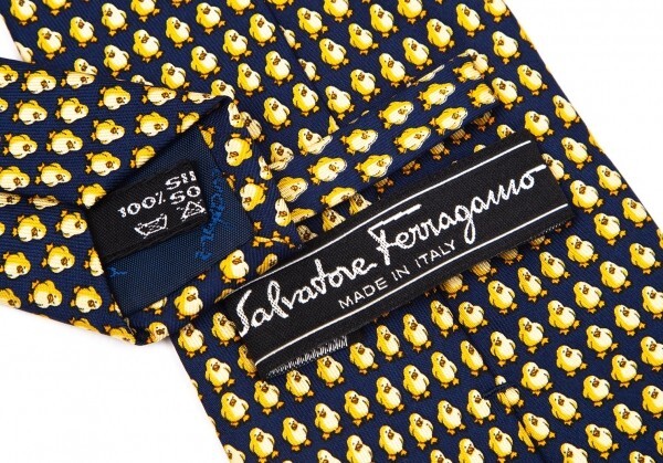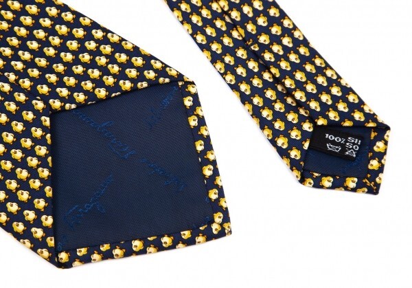 | サルバトーレフェラガモSalvatore Ferragamo ひよこ総柄シルクネクタイ 紺黄 |