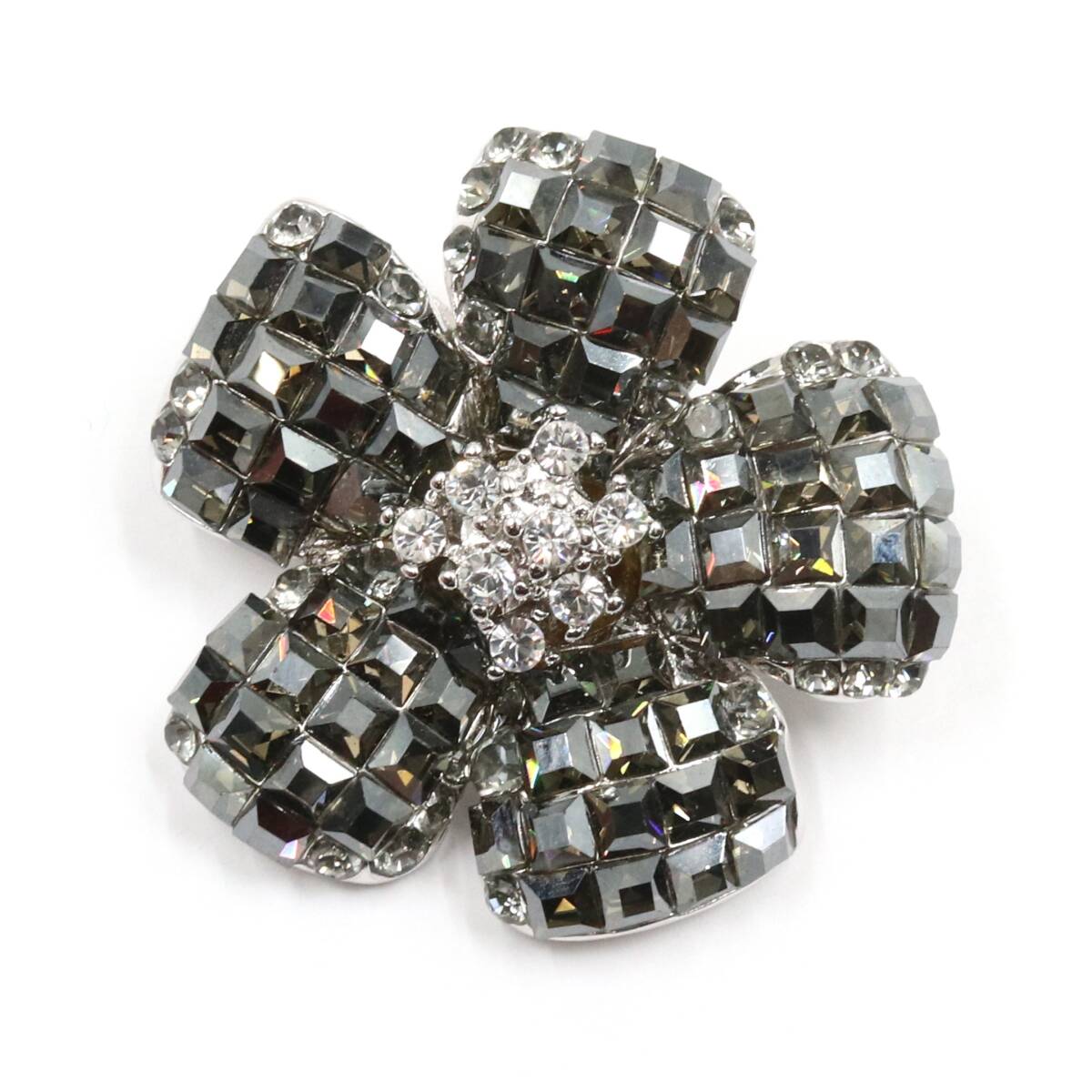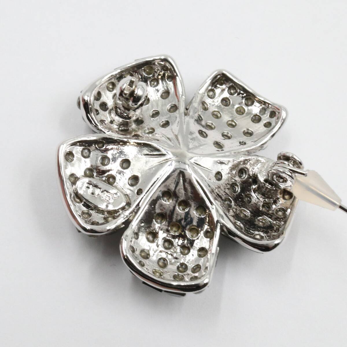 ★【美品】FOXEY フォクシー ラインストーン フラワー 花 ピンブローチ ピンバッジ アクセサリー シルバー系