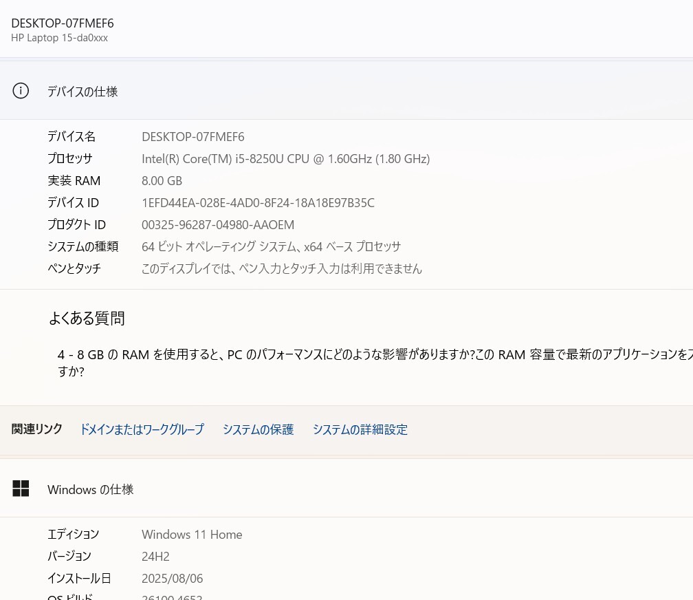 中古良品ノートパソコン HP Laptop 15-da0093TU