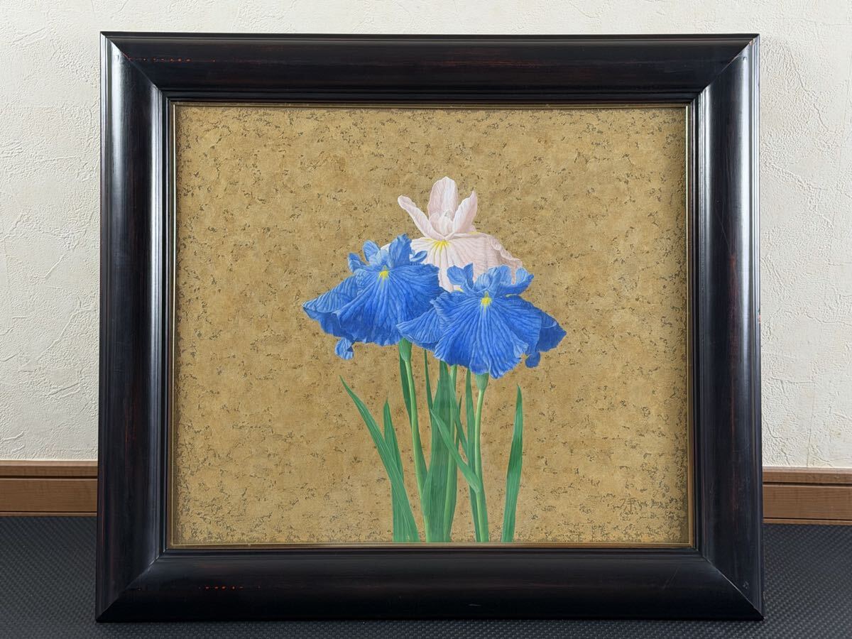 城康夫 「花菖蒲」 油彩 10F 共シール ダンボール箱 額装 国画会員 京都出身