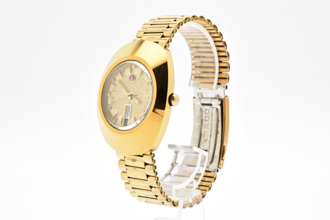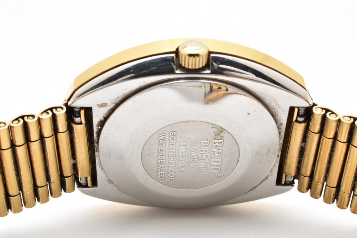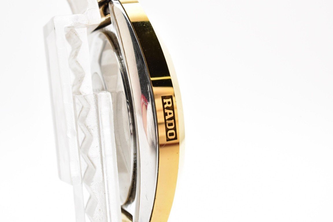 RADO ラドー DIASTAR 648.0413.3 ゴールド ラウンド 金文字盤 3針 石付き デイデイト レディース クォーツ 腕時計