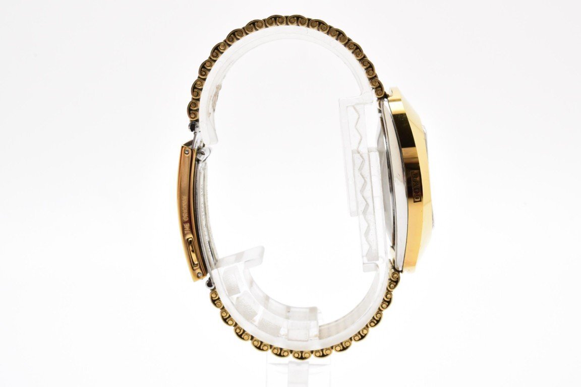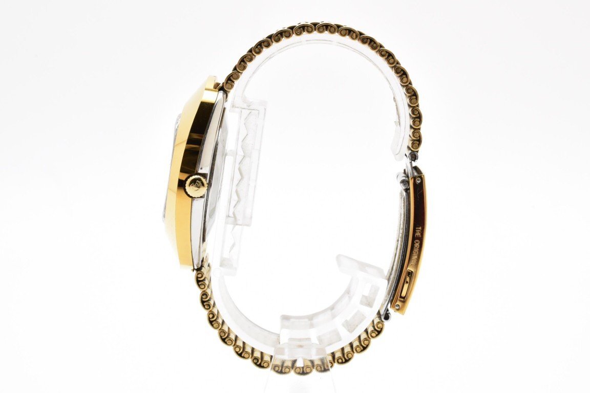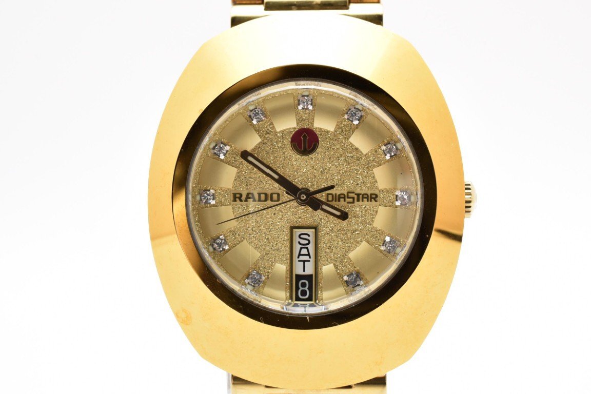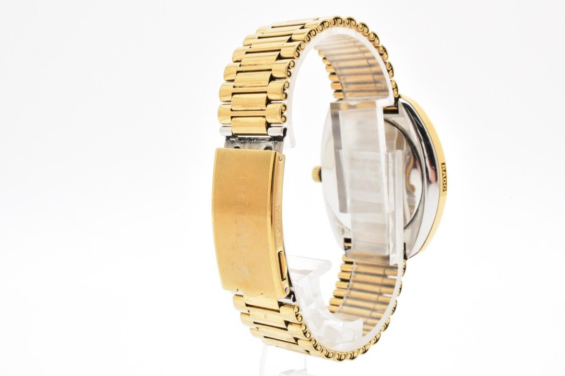 RADO ラドー DIASTAR 648.0413.3 ゴールド ラウンド 金文字盤 3針 石付き デイデイト レディース クォーツ 腕時計