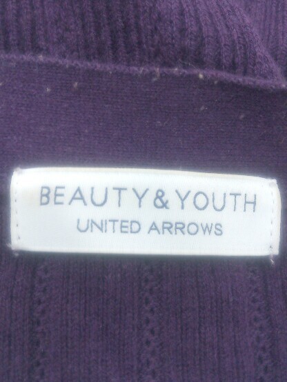 ◇ BEAUTY&YOUTH UNITED ARROWS リブニット オフィス系 シンプル 長袖 カーディガン パープル レディース P