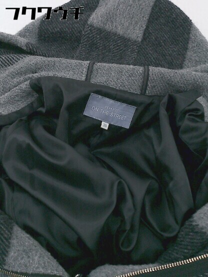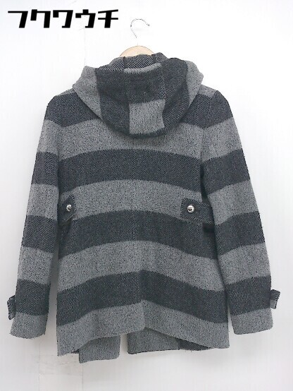 ■ aquagirl ON THE STREET ウール混 ボーダー 長袖 ジップアップ パーカー コート サイズ38 グレー ブラック系 レディース