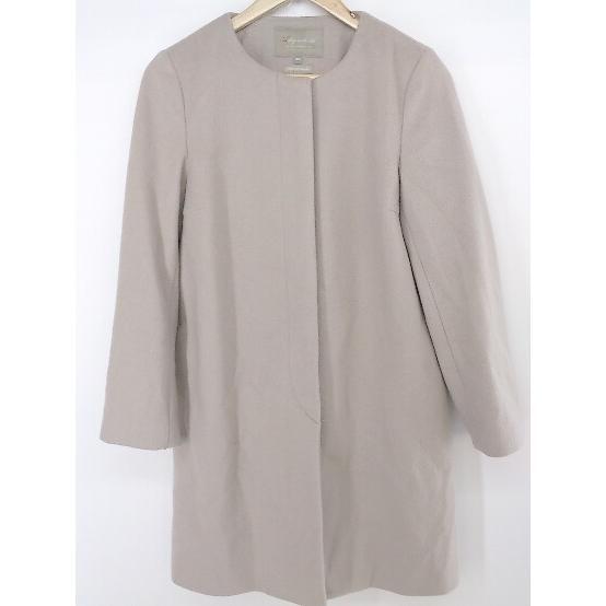 ◇ A day in the life UNITED ARROWS ノーカラー ウール 長袖 コート サイズ36 ベージュ系 レディース P