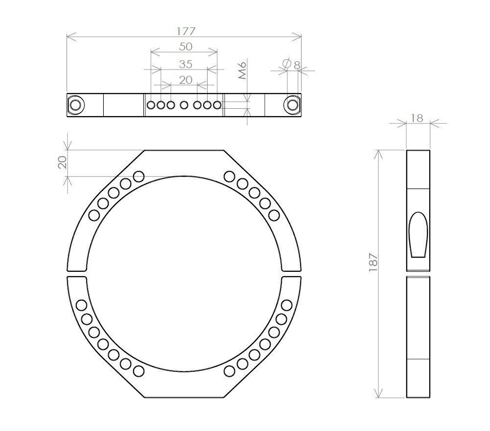 ネジ穴仕様:M6ネジ穴を真ん中1箇所、20mmピッチ2箇所、35mmピッチ2箇所、50mmピッチ2箇所