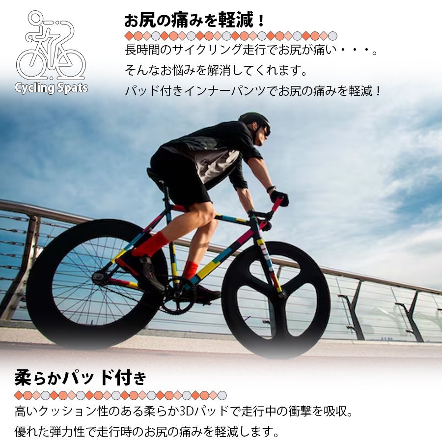 | ・お尻のパッドの付いたサイクリング用インナースパッツです。 ・3Dパッドが長時間走行のお尻の痛みを軽減してくれます。 ・クッション性のあるパッドが衝撃を吸収。 ・スパッツ部分はメッシュ素材で通気性バツグン! ・吸水・速乾性に優れているので汗をかいても快適な履き心地。 ・伸縮性のある素材で体にフィットします。 ・サイクリングだけでなくエアロバイクやツーリング・乗馬などにも。色んなシーンで活躍します。 ・豊富なサイズ展開。 |