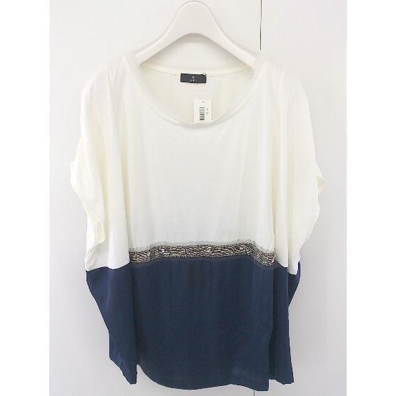 ◇ INED イネド 半袖 ブラウス カットソー サイズ9 オフホワイト ネイビー レディース