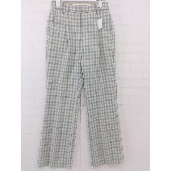 ◇ LOWRYS FARM ローリーズファーム ウエストゴム チェック パンツ サイズM ベージュ グリーン レディース P