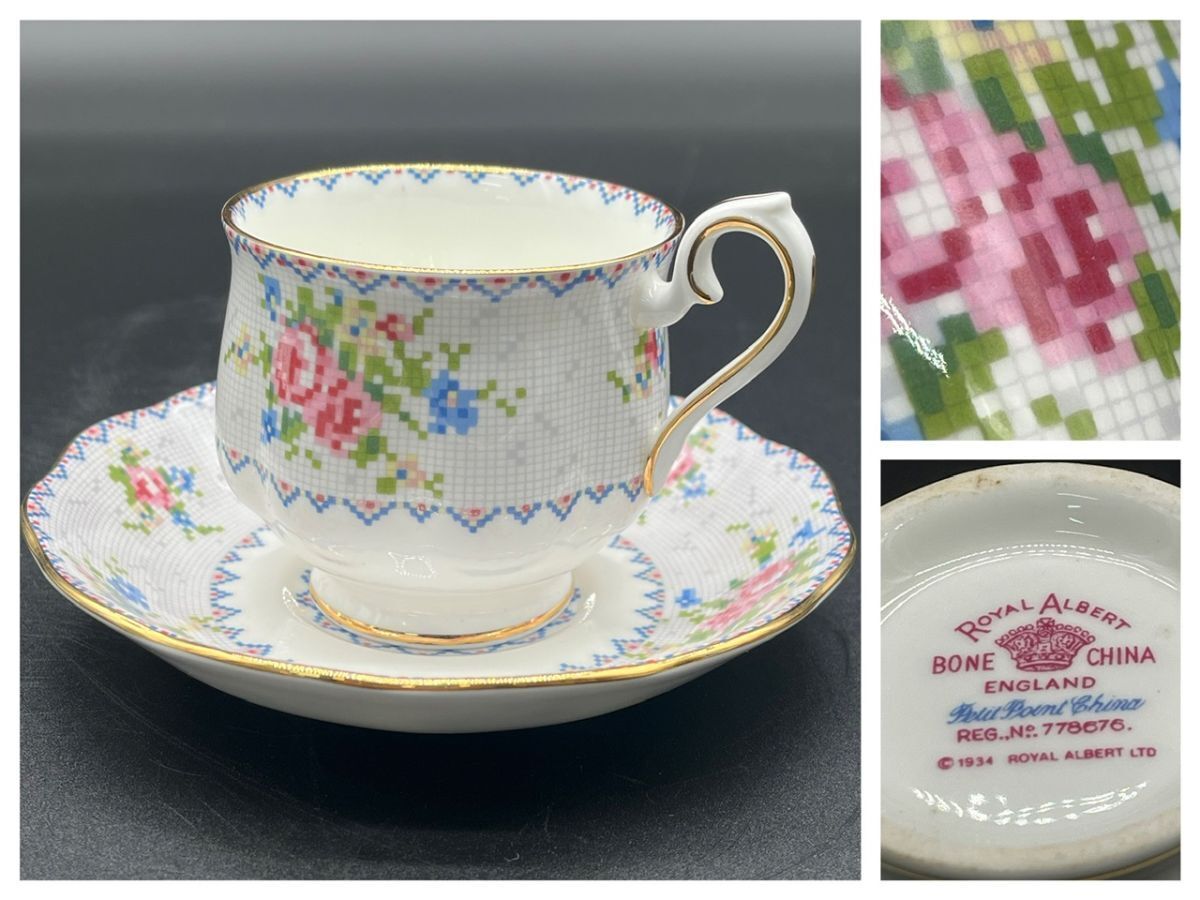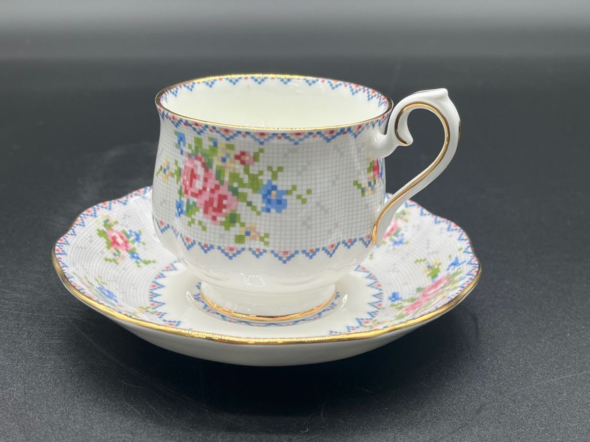 ROYAL ALBERT BONE CHINA ロイヤルアルバート ボーンチャイナ カップ&ソーサー 金彩 モザイク柄 ドット