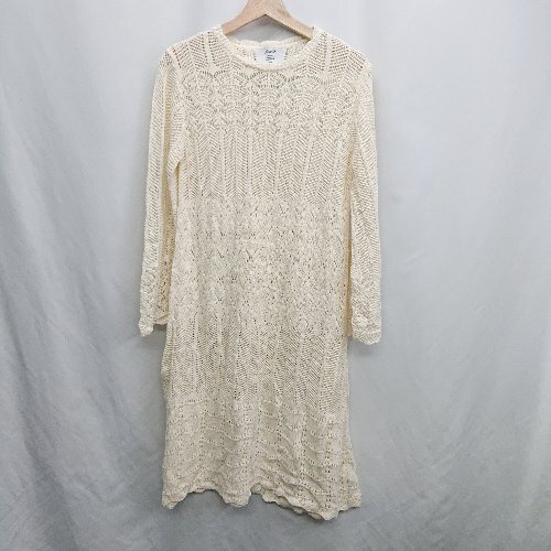 ◇ ⊇ jouetie ジュエティ かぎ編みニット 長袖 膝下丈 ワンピース サイズM アイボリー系 レディース E