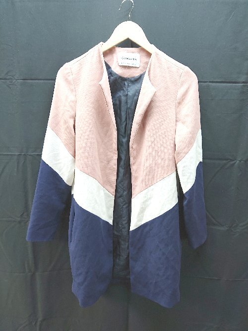 ■ Stradivarius ブレザー 前開き 長袖 ジャケット サイズS ネイビー ピンク レディース E