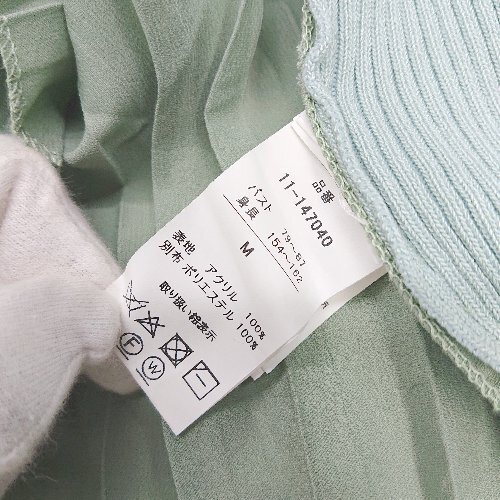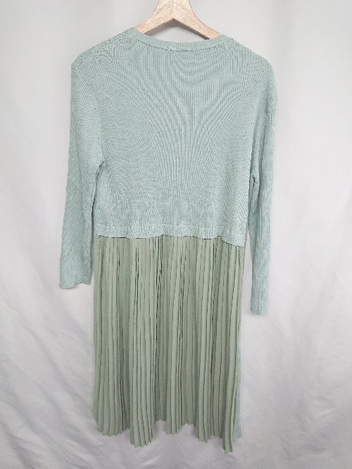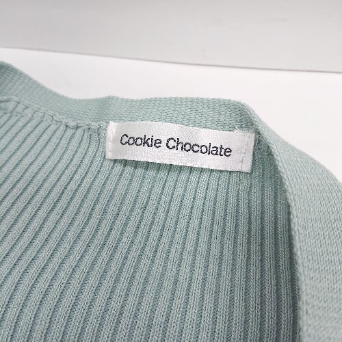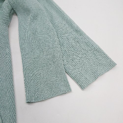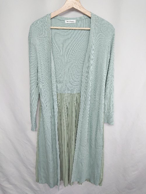 ◇ cookie chocolate リブニット プリーツ加工 長袖 ロングカーディガン サイズM ライトグリーン グリーン レディース E