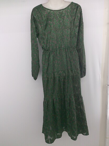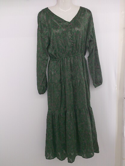 ◇ ◎ KBF URBAN RESEARCH ペチコート付き 総柄 長袖 ロング ワンピース サイズONE グリーン系 ピンク系 レディース E