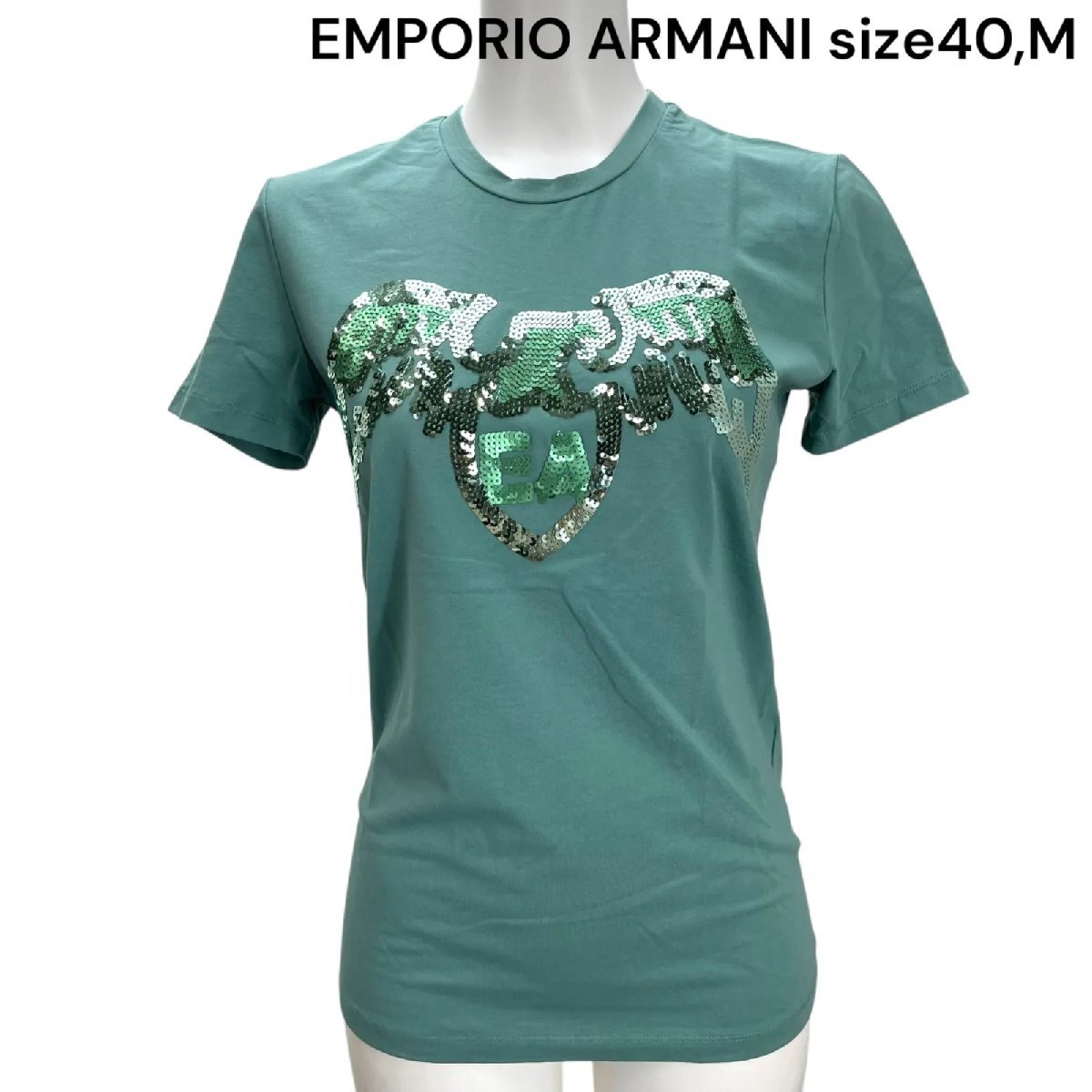 美品エンポリオアルマーニ EMPORIO ARMANI エンジェル ロゴ Tシャツ カットソー 40、M レディース S5Q037