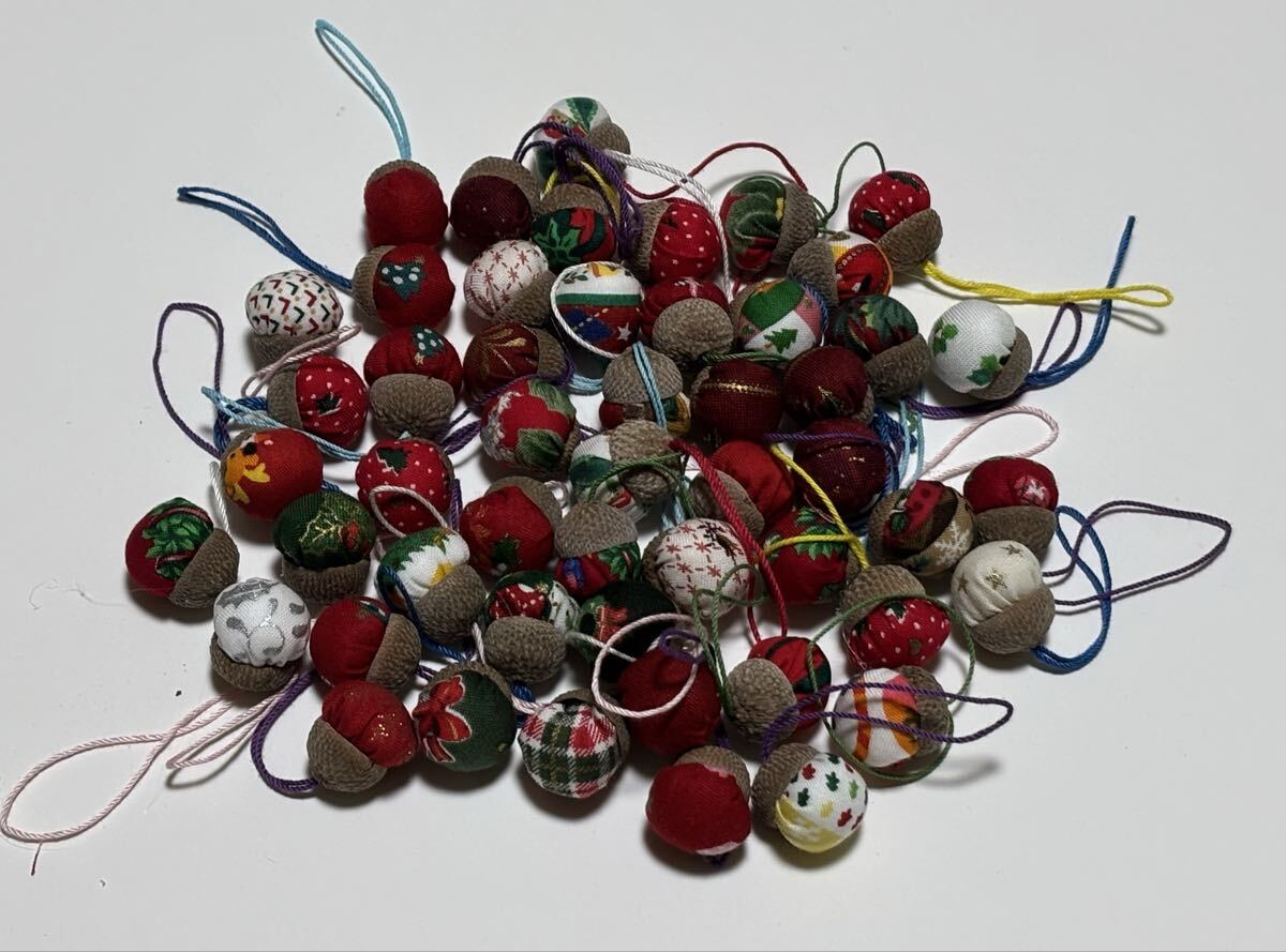 クリスマスプリントを使ったどんぐり飾り50個です。