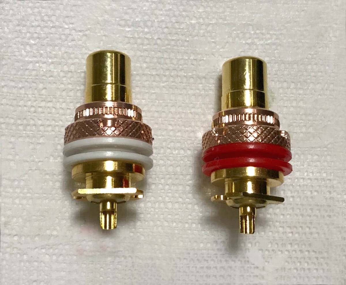 最高級新品テルル銅のRCAジャック(白1個、赤1個)2個です。センターの絶縁はテフロンです。