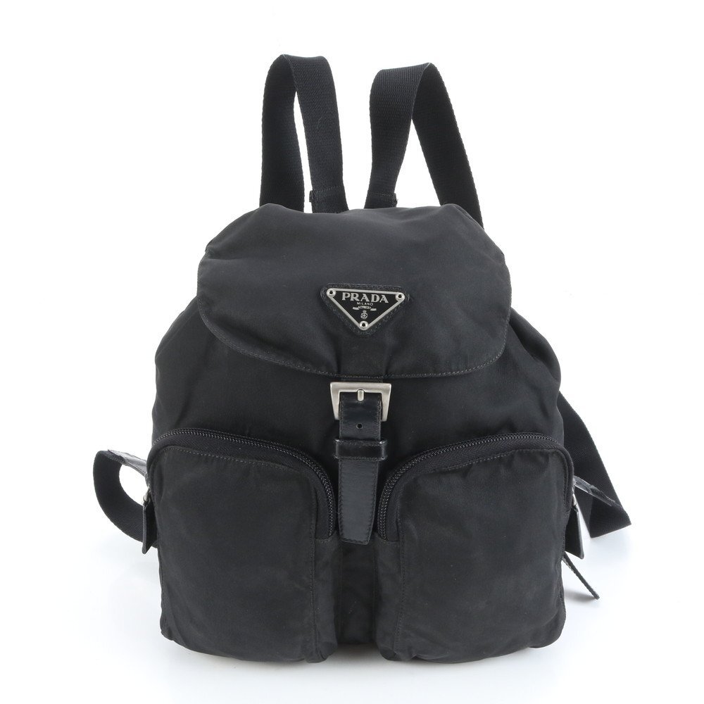 1円■極美品■プラダ テスート ナイロン トライアングルロゴ レザー リュックサック バックパック バッグ ブラック レディース EUM DC10-1