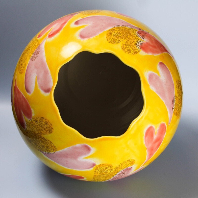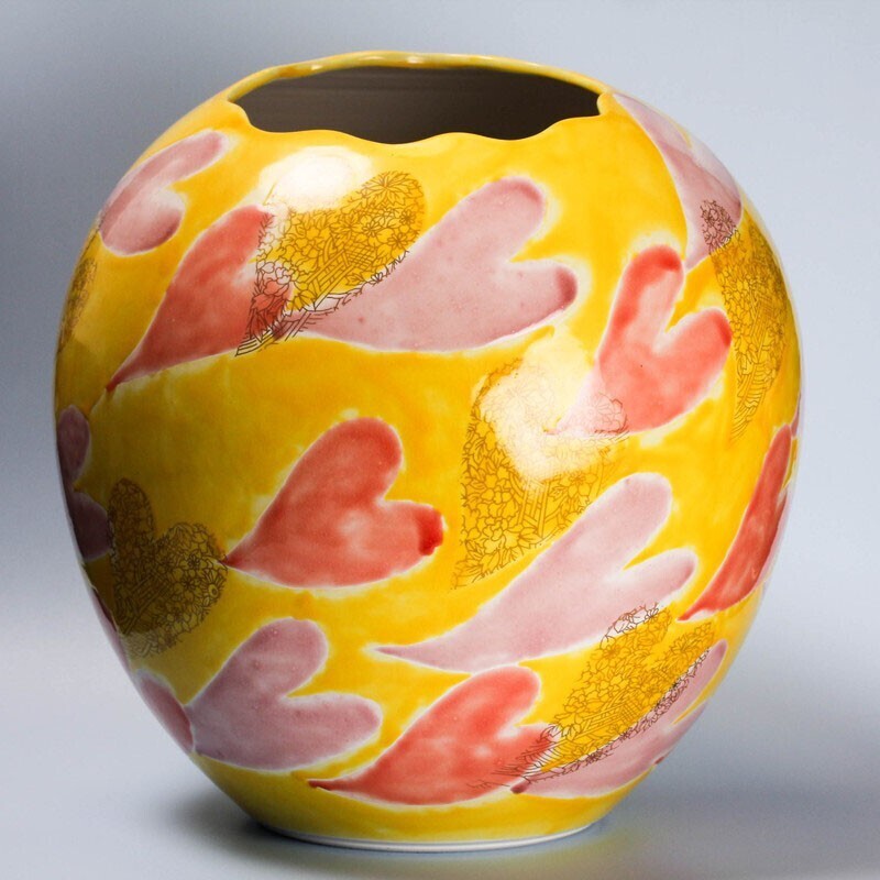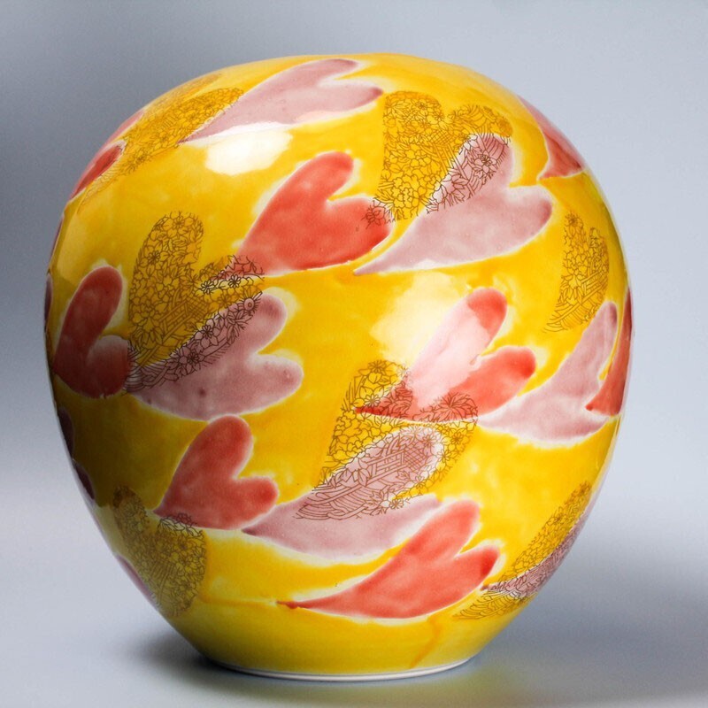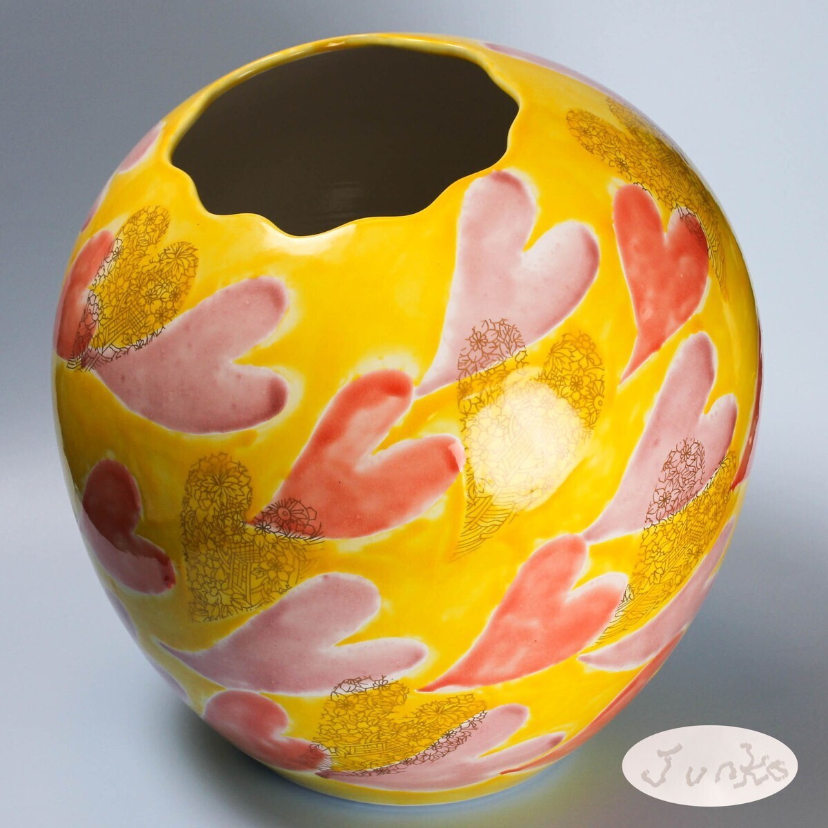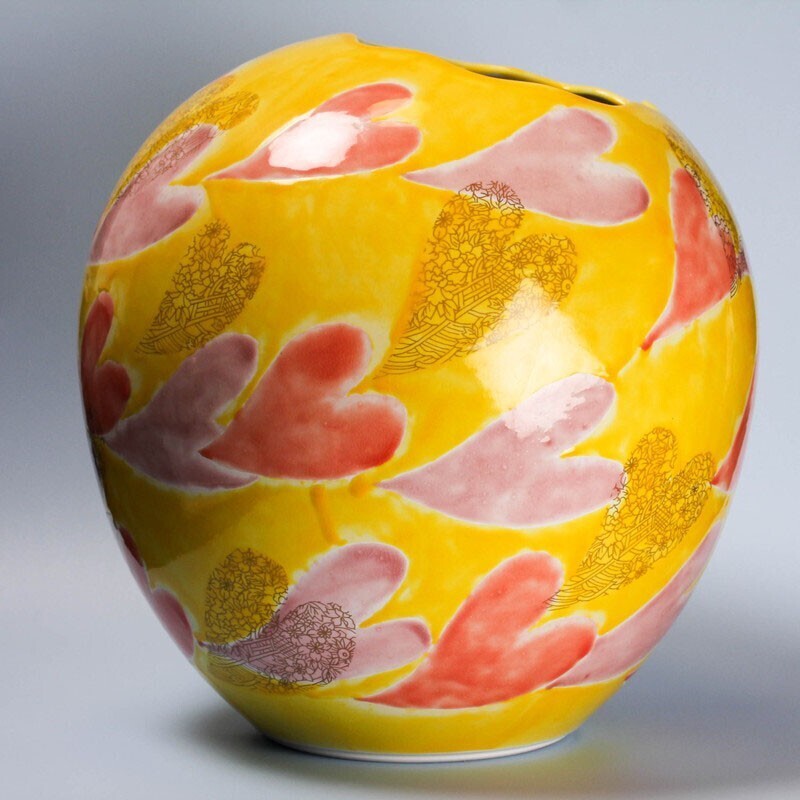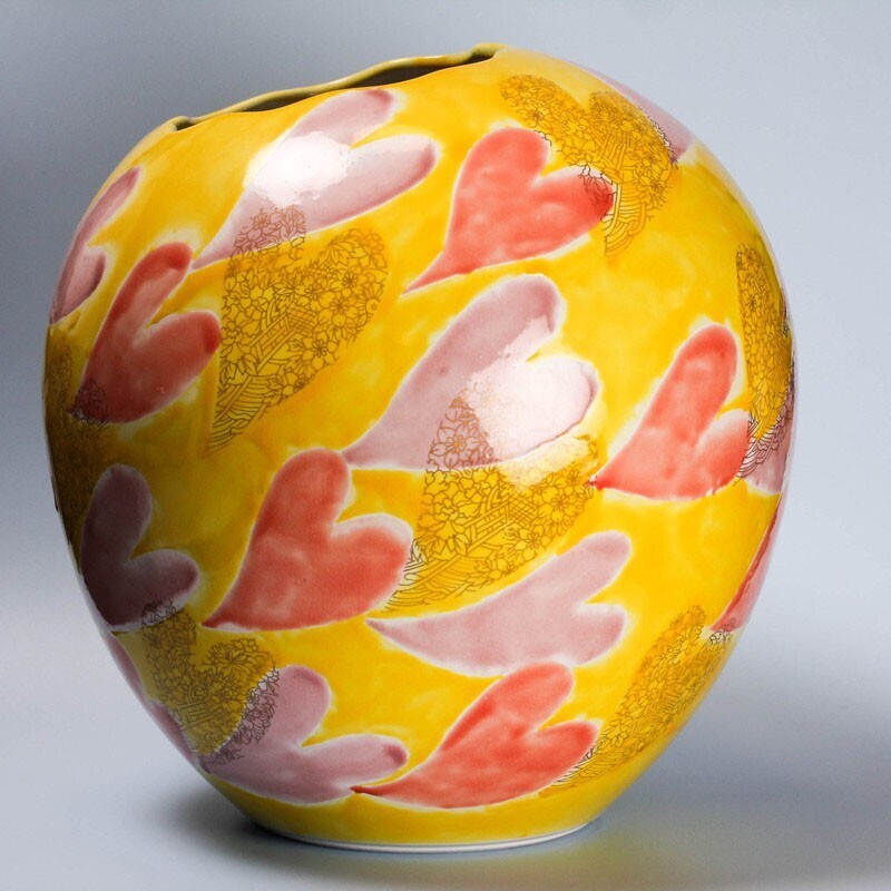 四代 徳田八十吉(徳田順子) 高さ30cm ハート文壷 本物保証