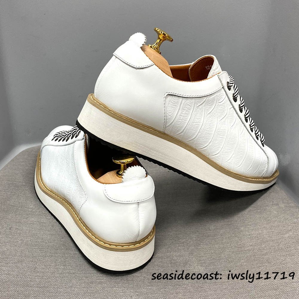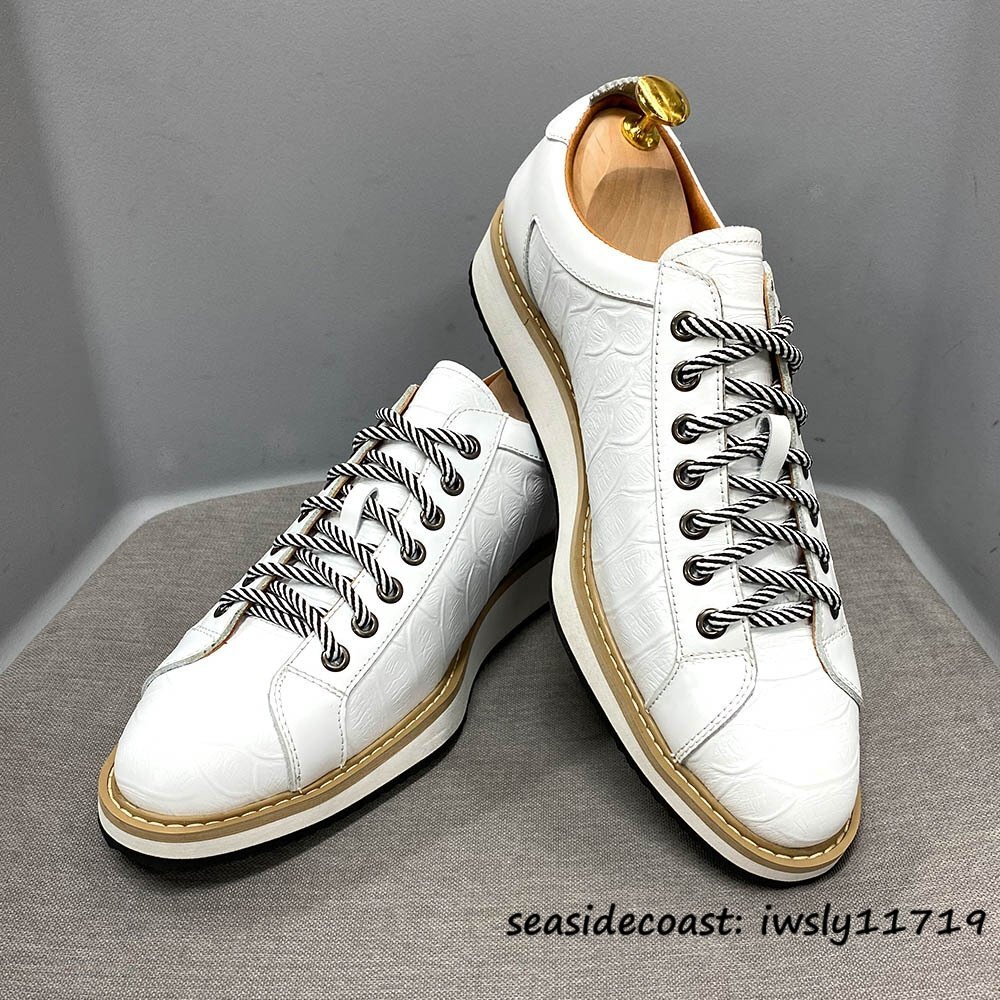 定価9万超◆最高級 スニーカー 本革 レザーシューズ メンズ ビジネスシューズ 牛革 革靴 職人手作り紳士靴 軽量ローファー ホワイト 25.0cm