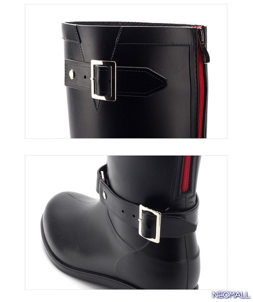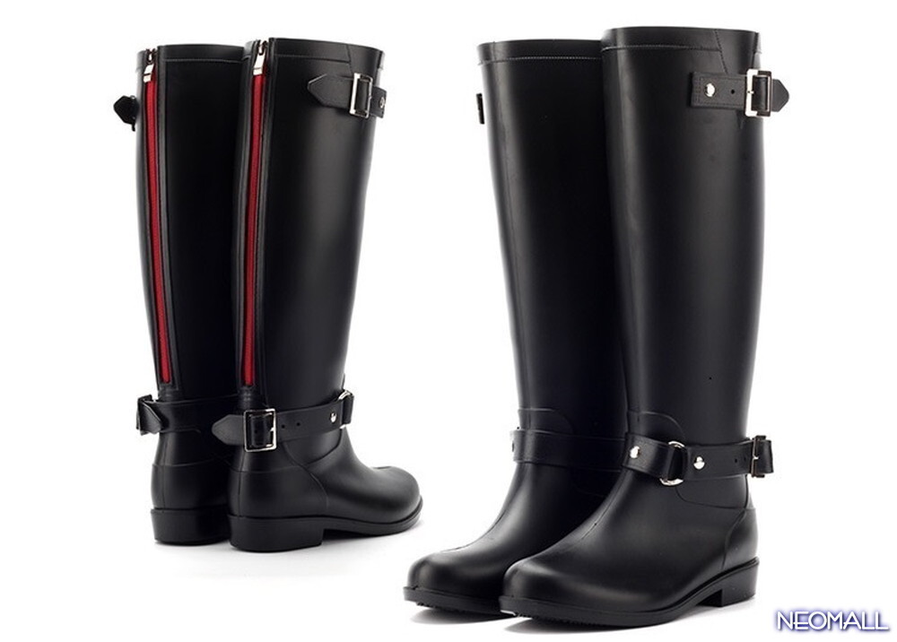 1スタ☆ ロングレインブーツ【488】 25.5cm ブラック×レッド ジッパー付きで履きやすい!防水 レインシューズ レディース 長靴