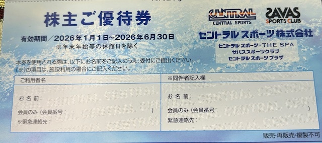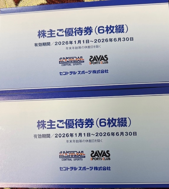★スポーツクラブのセントラルスポーツ株主優待券(施設利用券)6枚綴 2冊の価格ですです。
