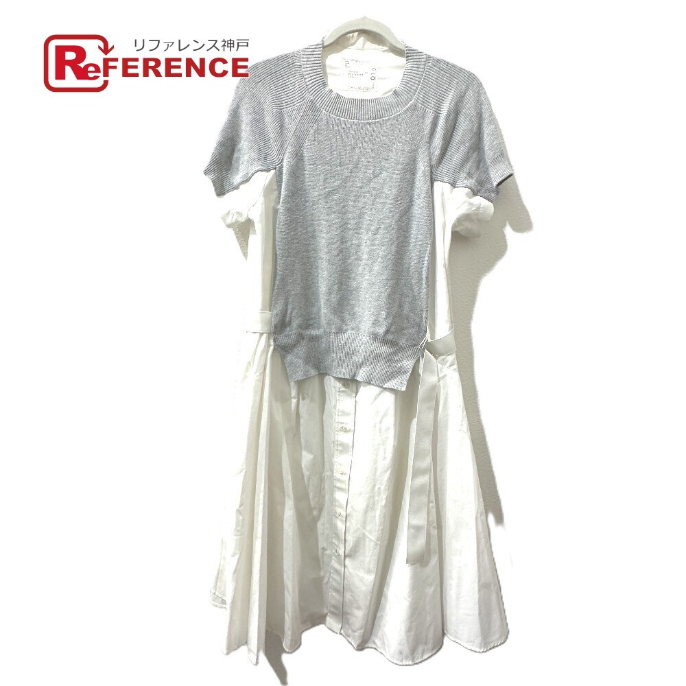 Sacai サカイ SCW-019 アパレル 服 半袖 ニットドッキングワンピース フレア ワンピース ホワイト レディース【中古】