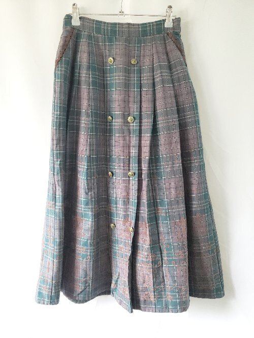 ◇ ⊇ axes femme アクシーズファム ロング プリーツ フロッキーチェックスカート サイズM グリーン系 マルチ レディース E