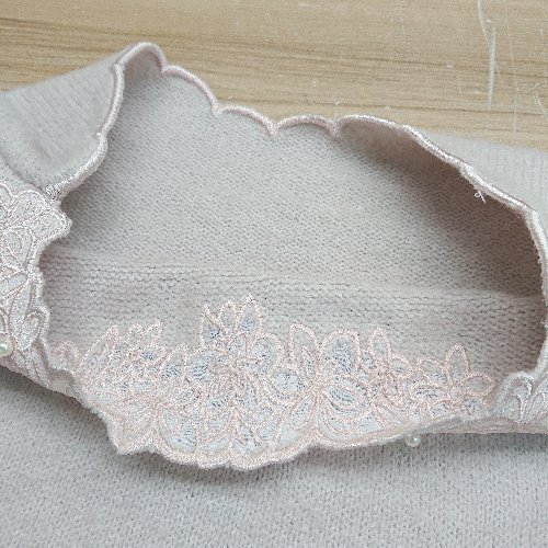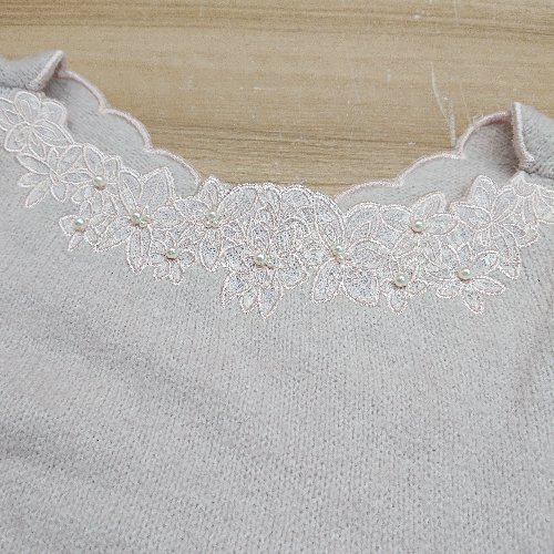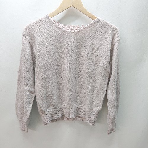 ◇ misch masch ミッシュマッシュ 胸元レース花 パール付 前後2WAY 長袖 ニット セーター サイズM ピンク レディース E