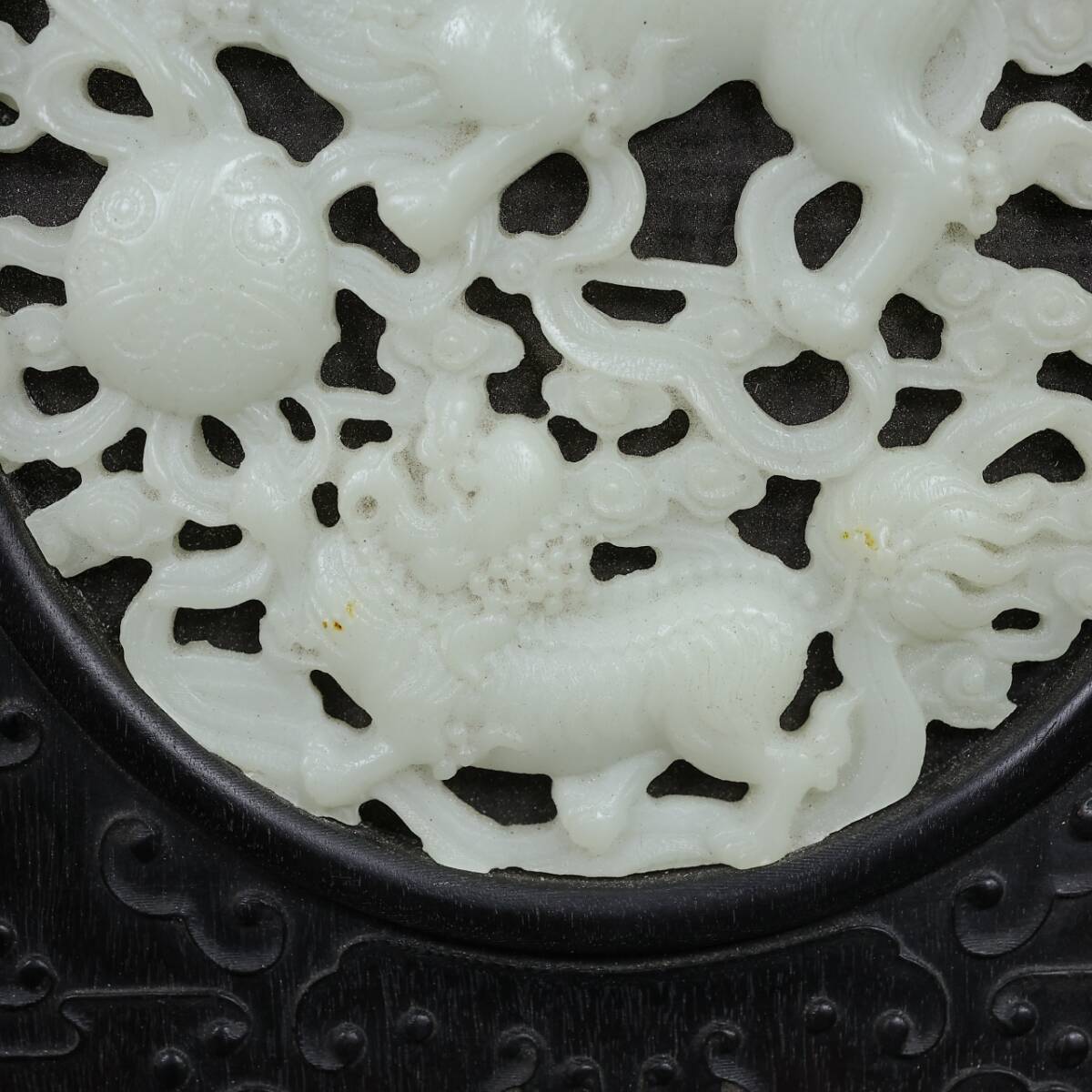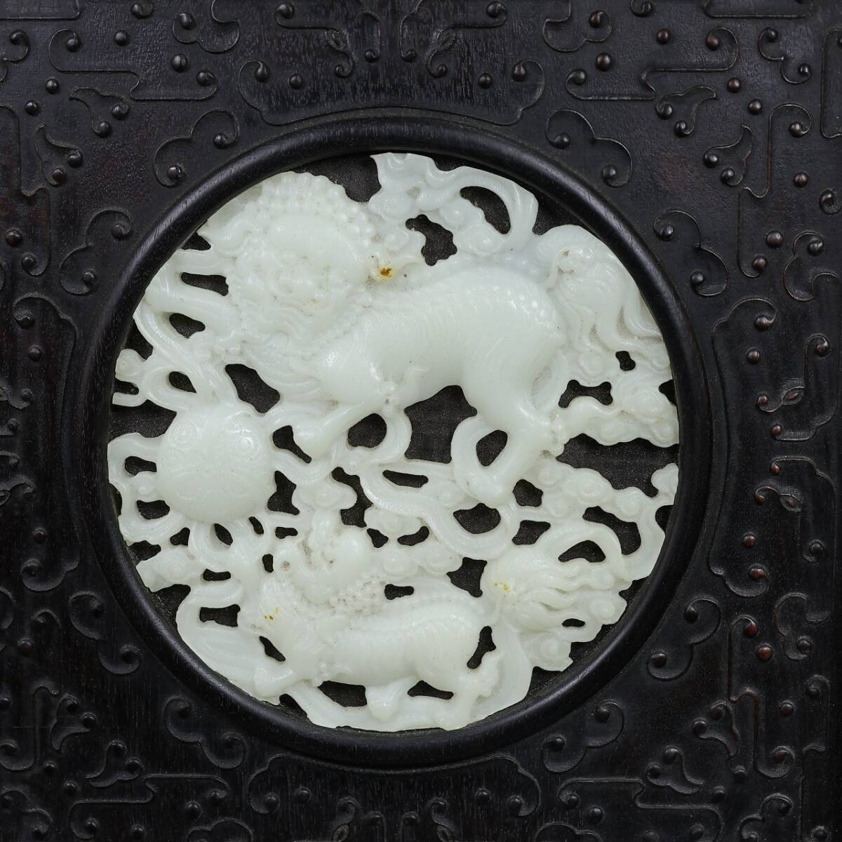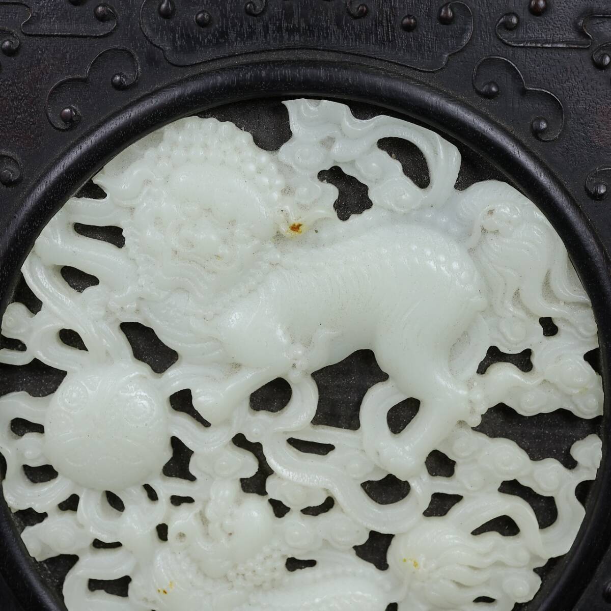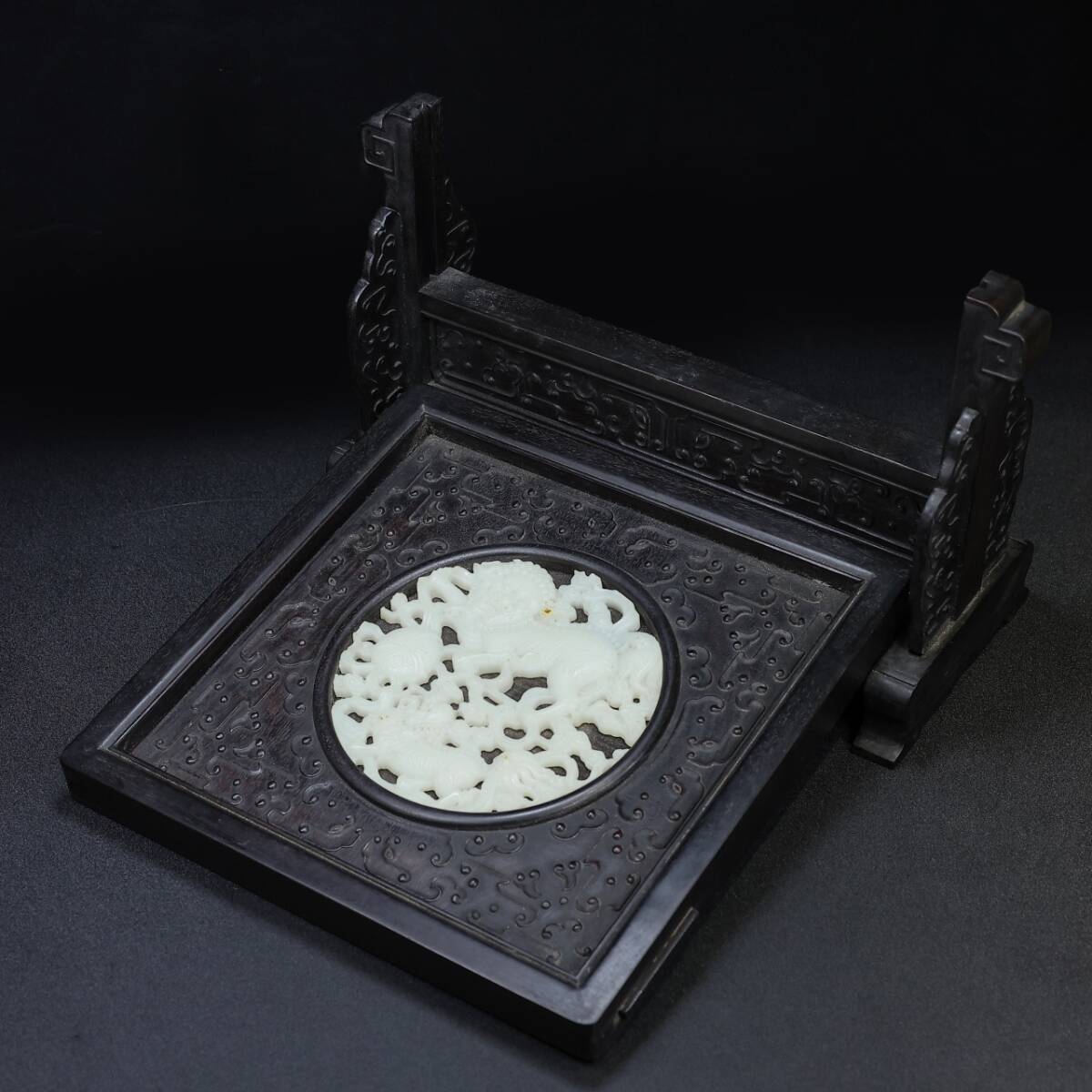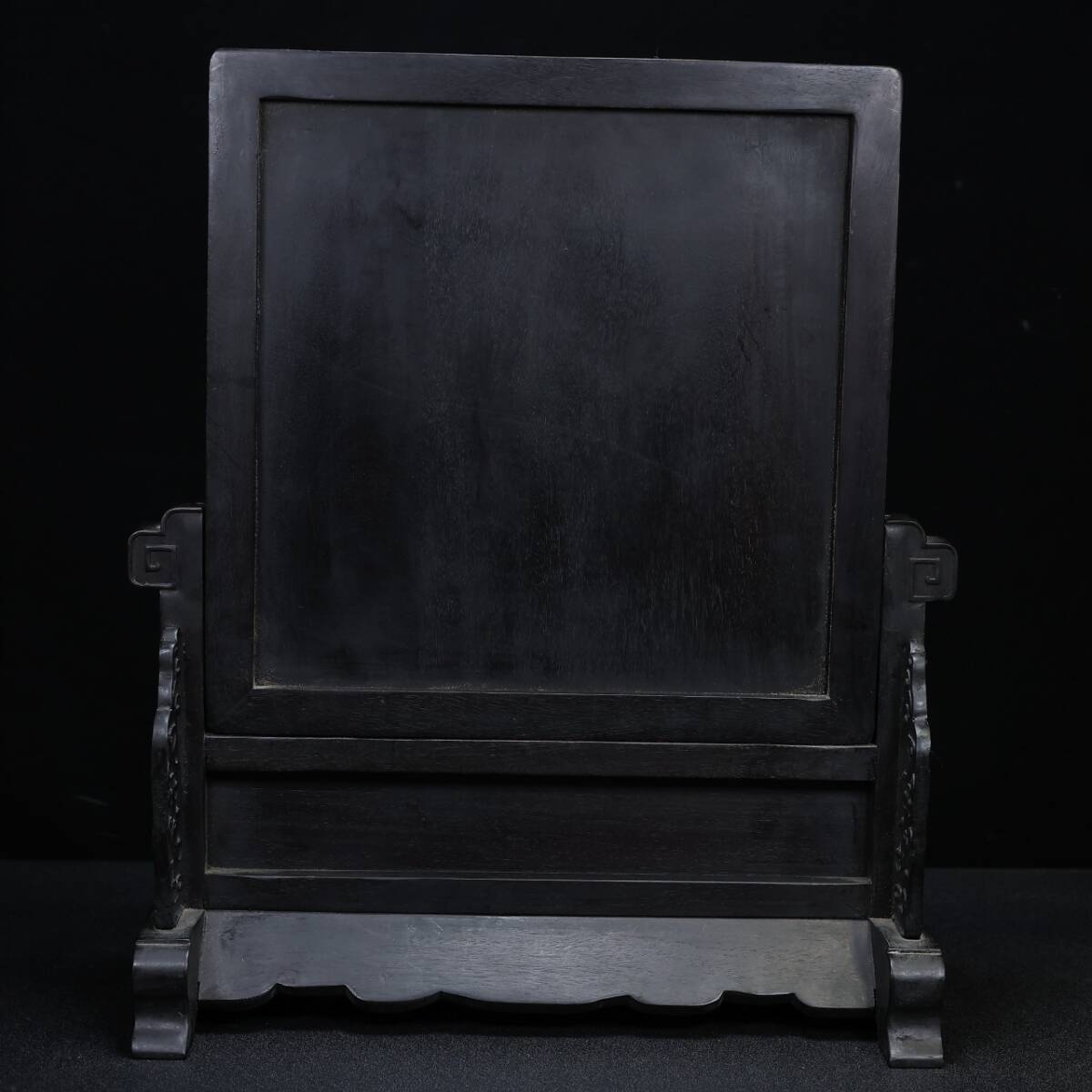 旧蔵 清 紫檀木 モザイク白玉 事事如意 屏風 置物 極細工 中国古玩 骨董品 古美味 212