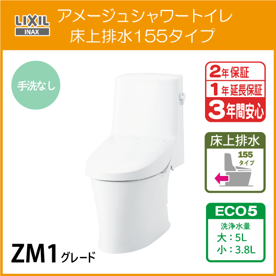 ★ LIXIL INAX アメージュシャワートイレ(手洗なし) 床上排水 155タイプ アクアセラミック仕様 ZM1グレード ★