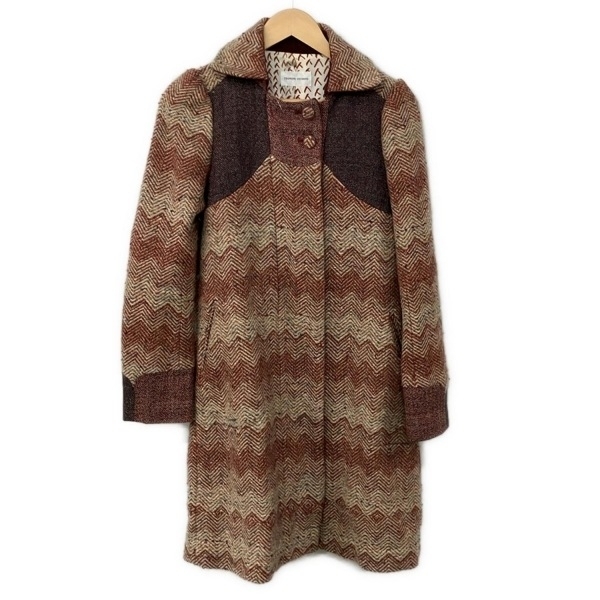 ツモリチサト TSUMORI CHISATO サイズ2 M - ベージュ×ブラウン×マルチ レディース 長袖/ツイード/秋/冬 コート