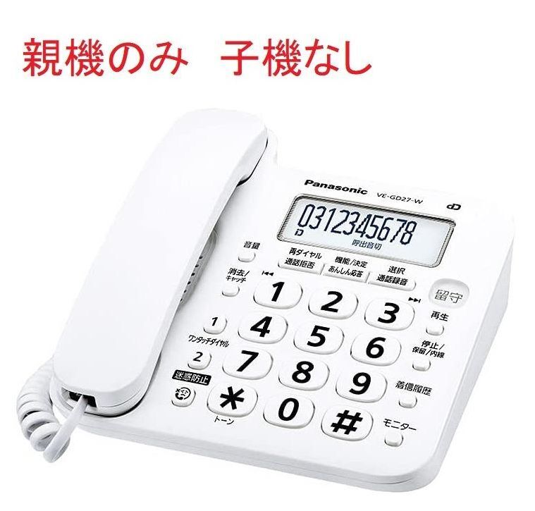 | パナソニック デジタルコードレス留守番電話機【VE-GD27DL-W】親機のみ | ||