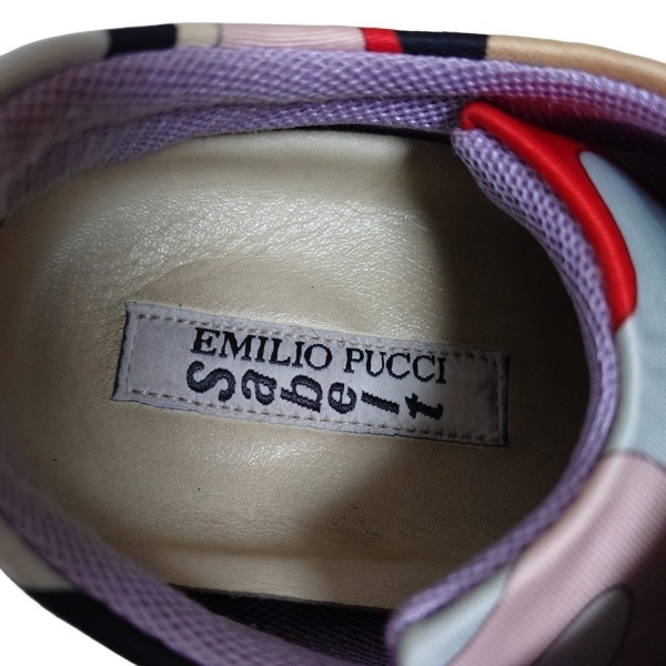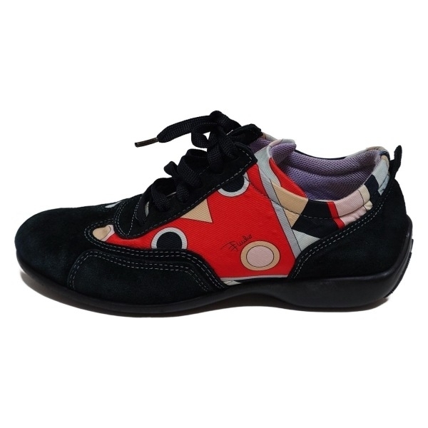 エミリオプッチ EMILIO PUCCI(PUCCI) スニーカー 35 - コットン 黒×ピンク×マルチ レディース インソール取外し可/Sabelt 靴