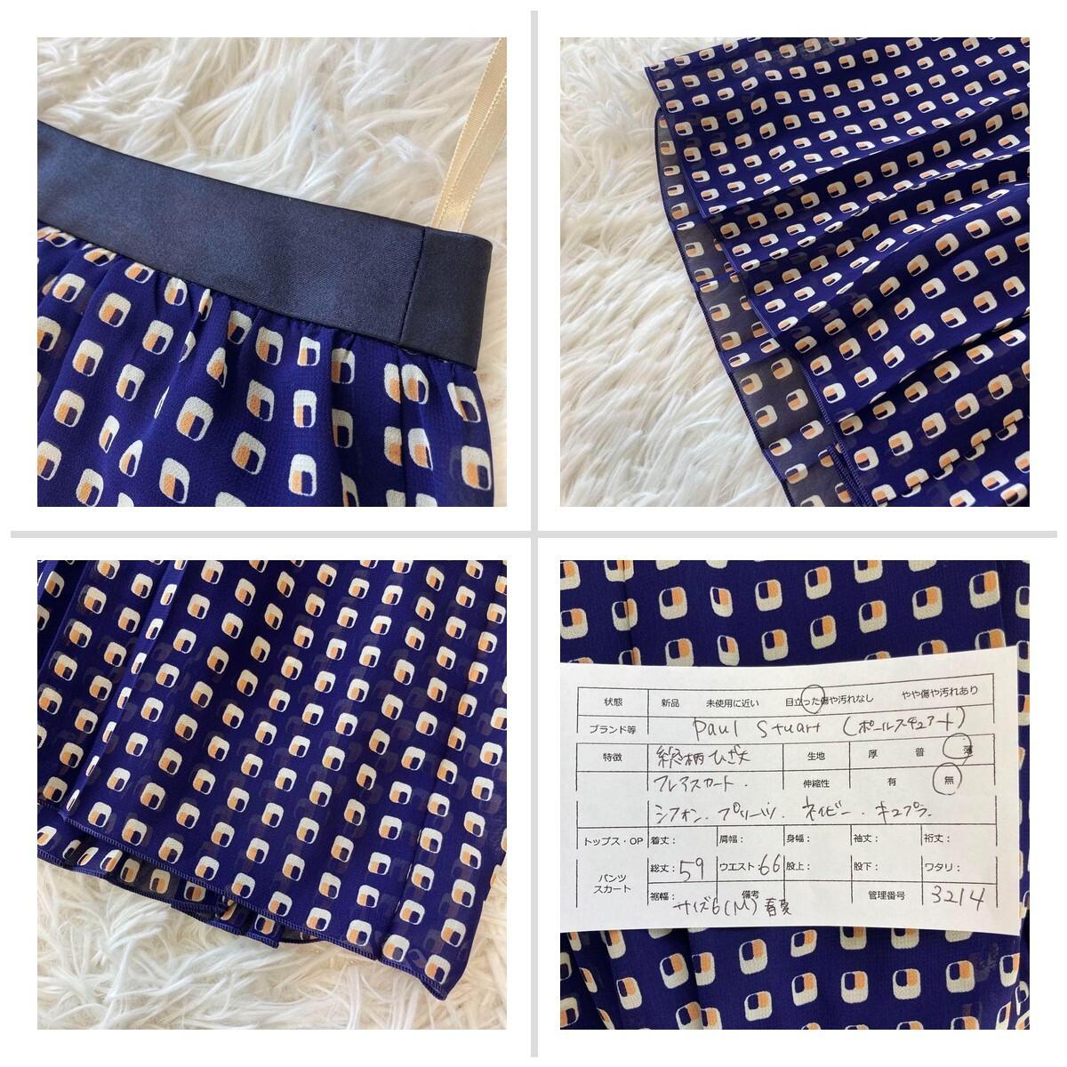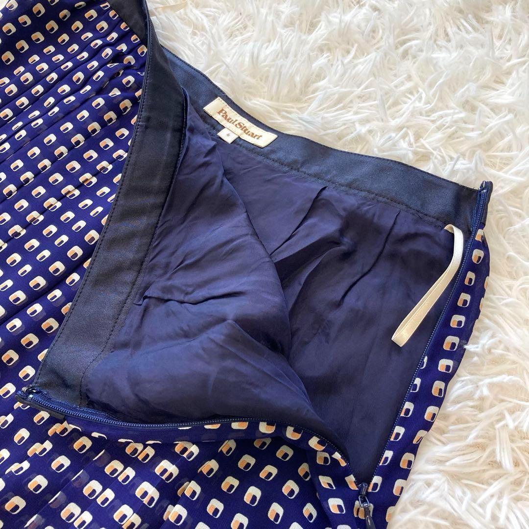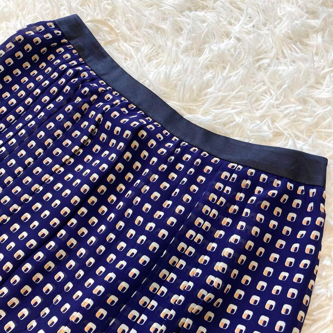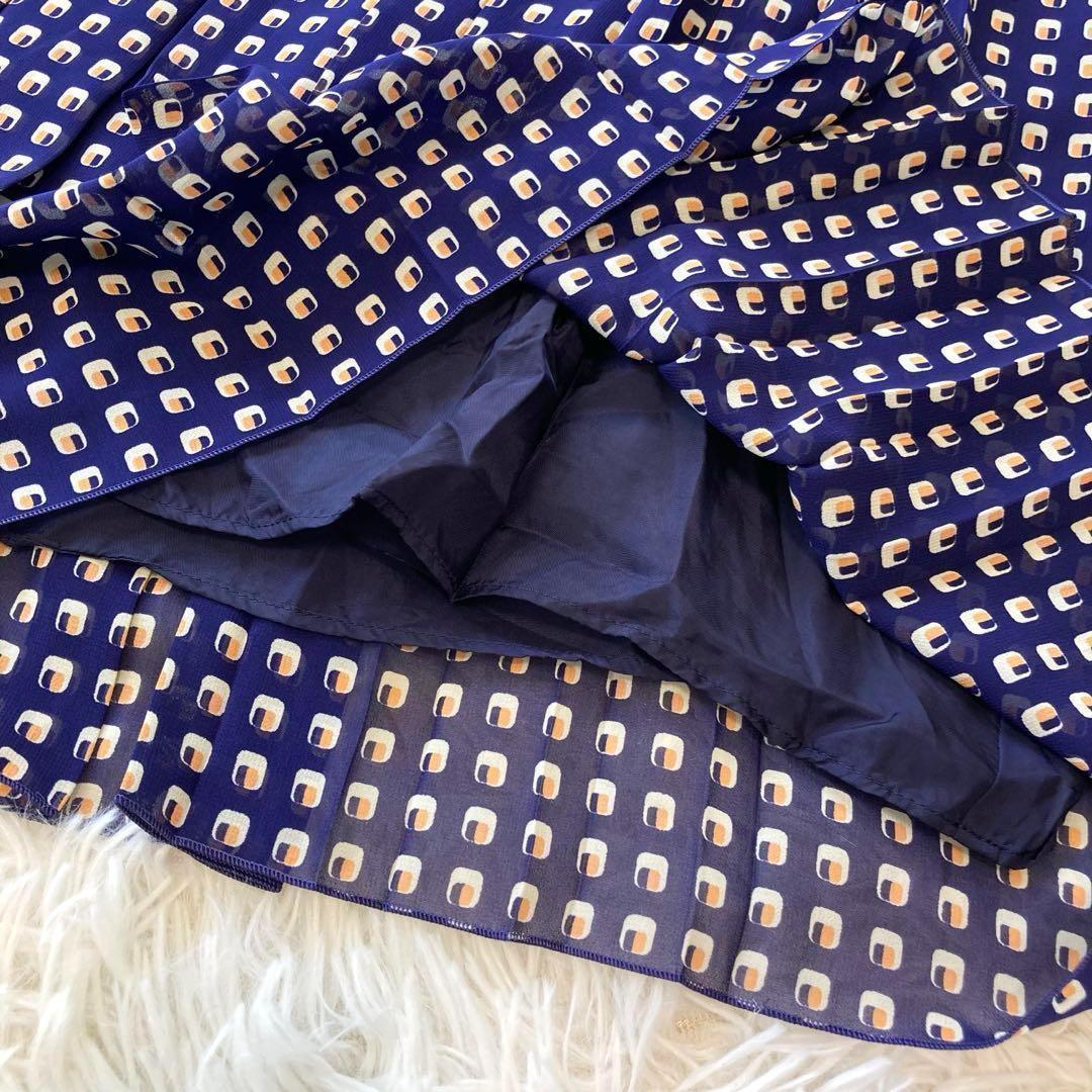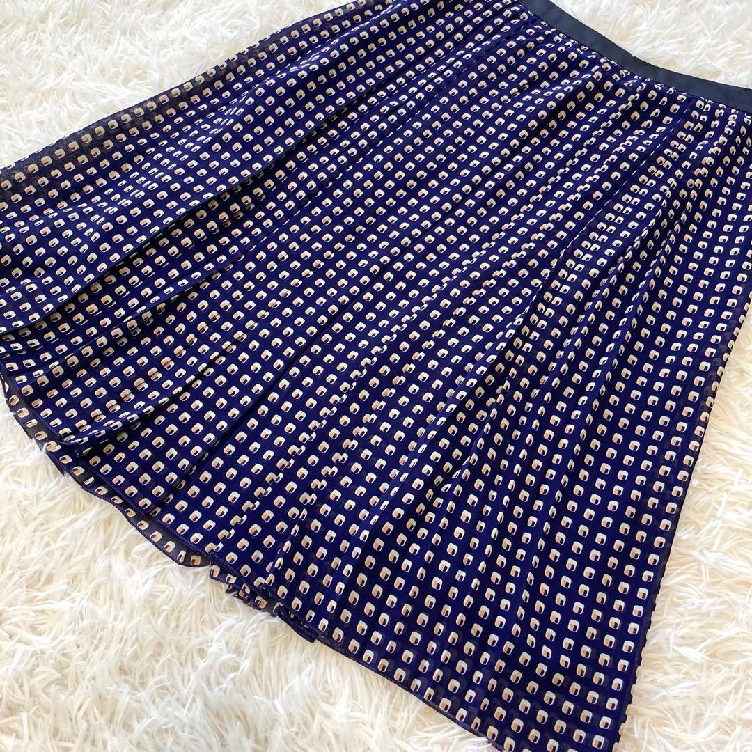 【ポールスチュアート】総柄シフォンプリーツフレアスカート Sネイビー幾何学模様 DB11F7