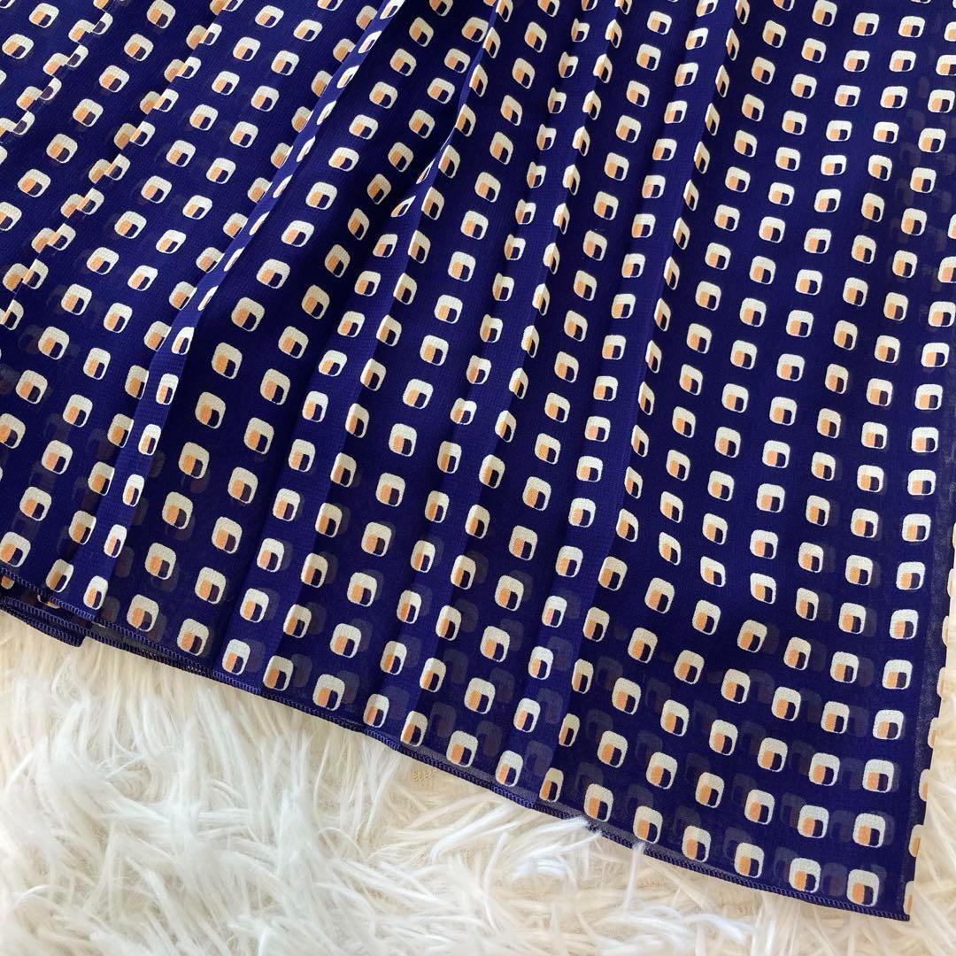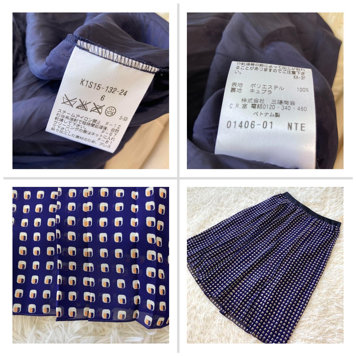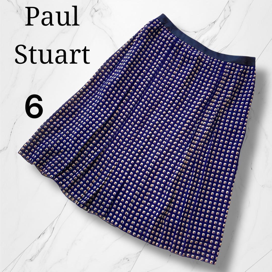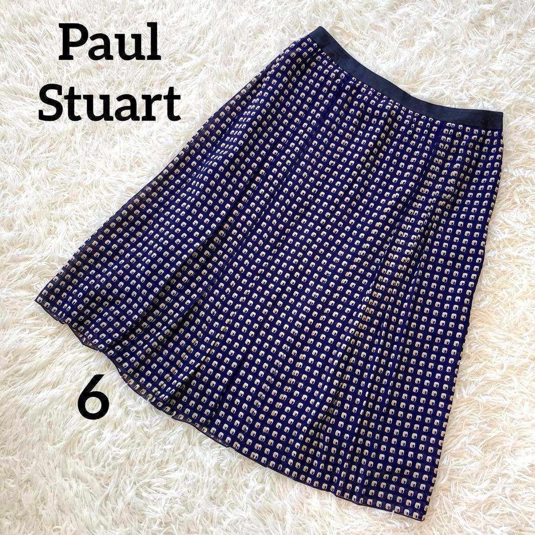 【ポールスチュアート】総柄シフォンプリーツフレアスカート Sネイビー幾何学模様 DB11F7
