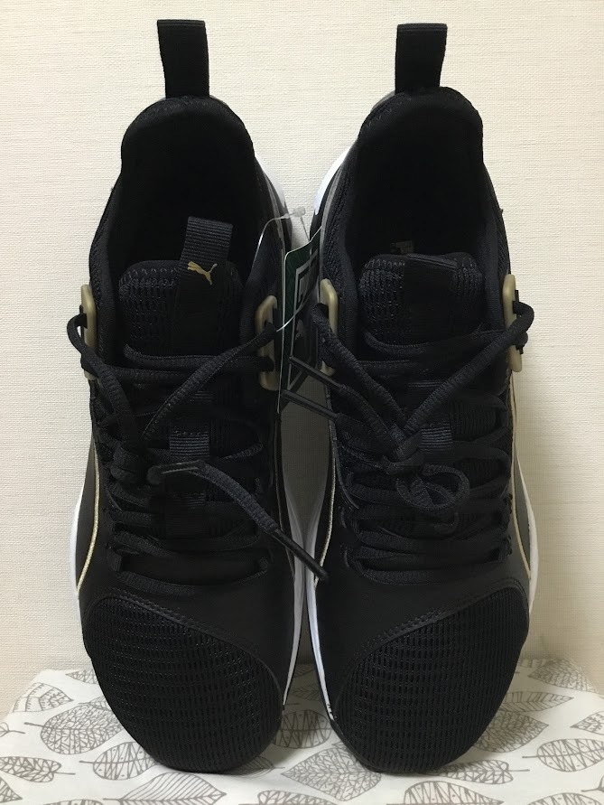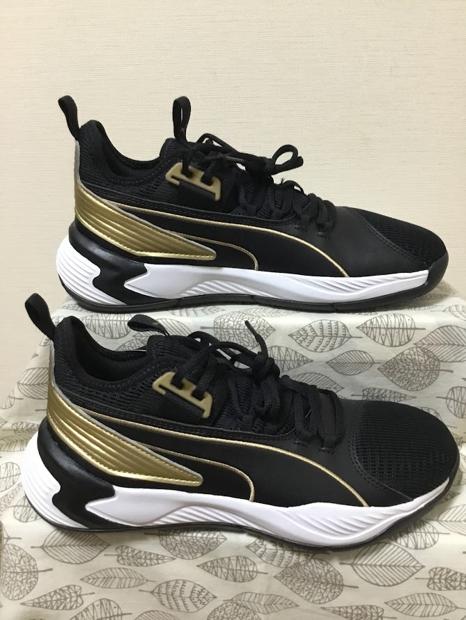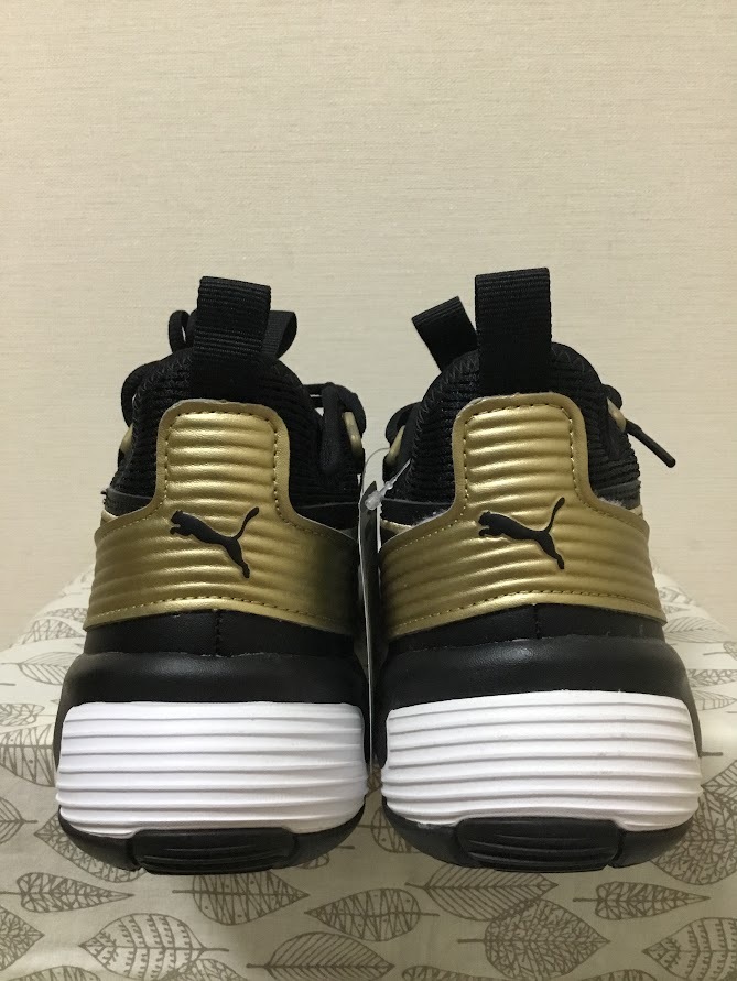 | 新品 PUMA ミッドカット スニーカー ブラック×ゴールド。 表示サイズ 24.0。 縦27.5cm、横10.2cm(一番広いところで採寸) 画像は同じモデルのものを使用しています。 バスケットタイプ。メチャクチャかっこいいです。 タグ・箱付きです。(箱いらない方はご連絡ください。) 送料無料(ゆうパック) 他にもスニーカーや衣類を安価にていろいろ出品しています。 どうぞよろしくお願いします! | |