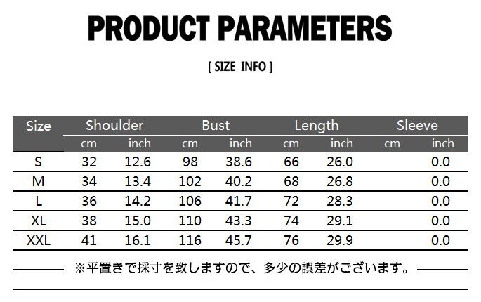 XL :肩幅38 胸囲110 着丈74 袖丈-