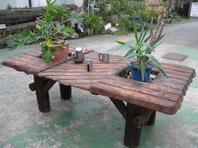 バーベキューテーブルや花台にしてティータイムの一時に。