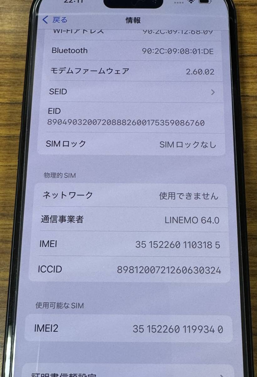 Apple iPhone 15 128GB ブラックチタニウム A3089 MTMN3J/A SIMフリー