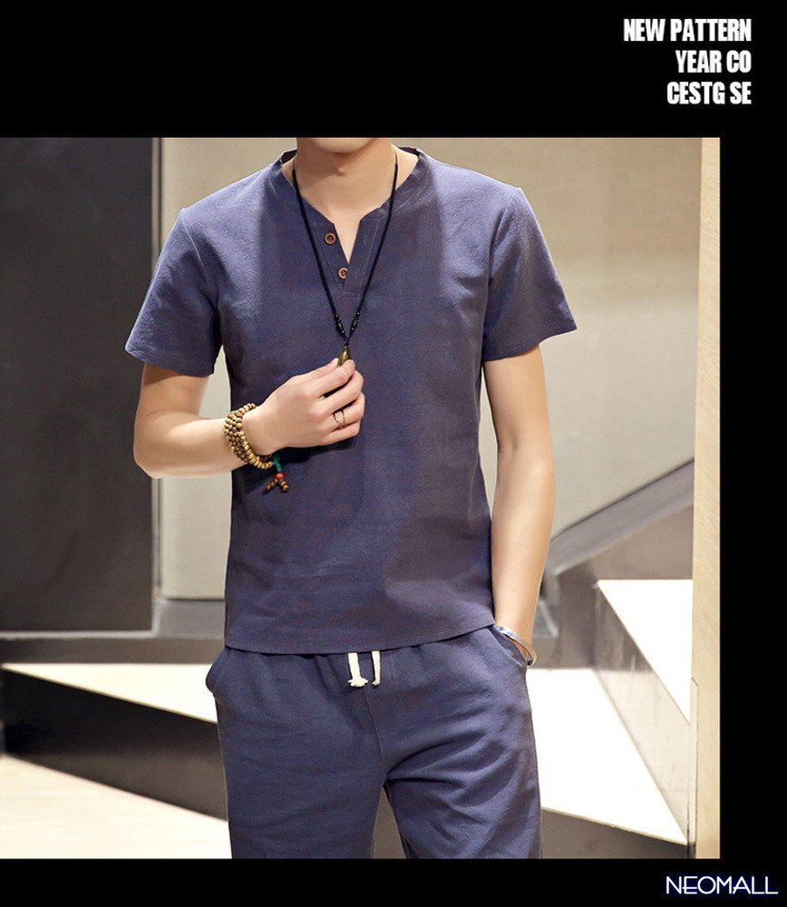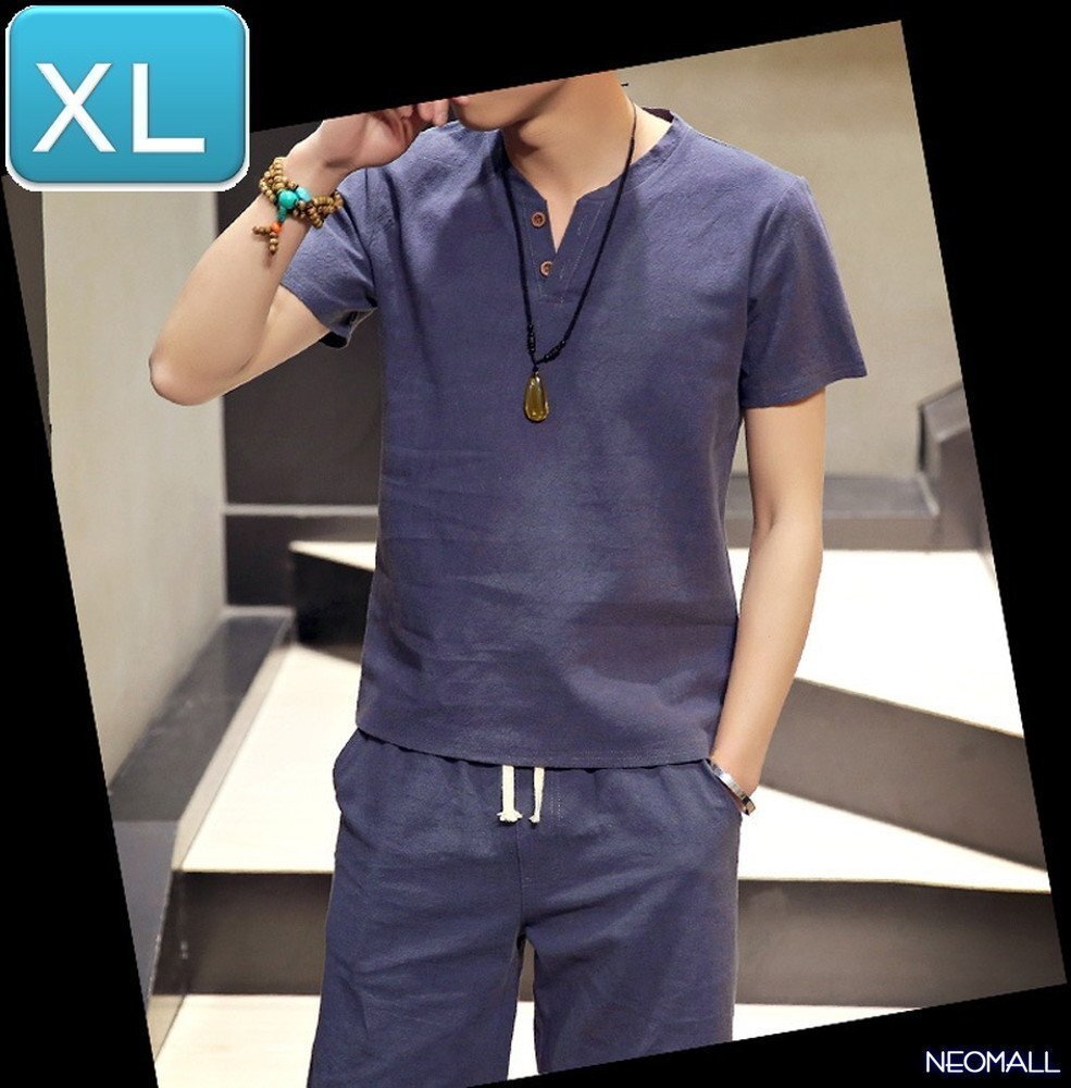 人気商品☆【276】 新品 サマーコットン ヘンリーネック セットアップ ブルーグレー XLサイズ 春 夏 部屋着 ルームウエア