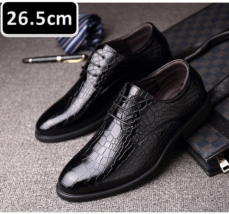 メンズ ビジネス レザー シューズ ブラック サイズ 26.5cm 革靴 靴 カジュアル 屈曲性 通勤 軽量 柔らかい 新品 【224】